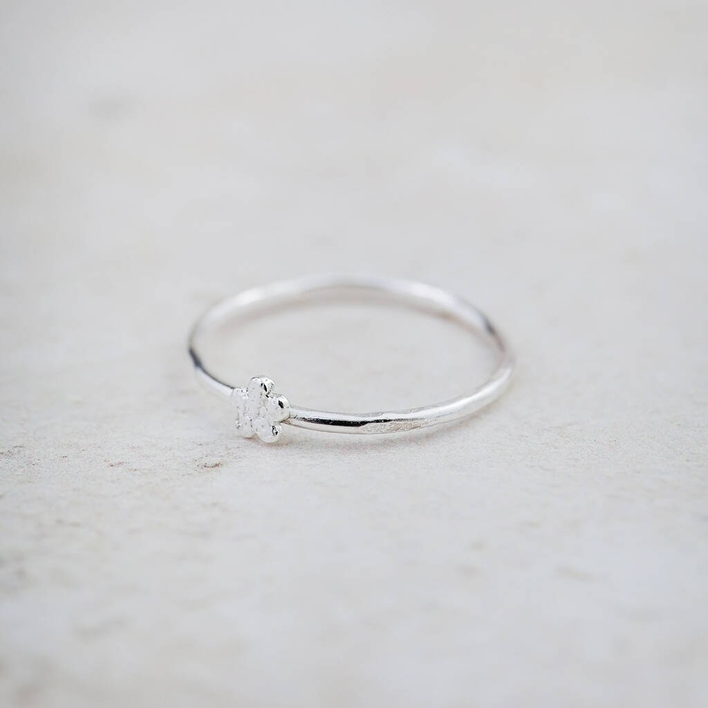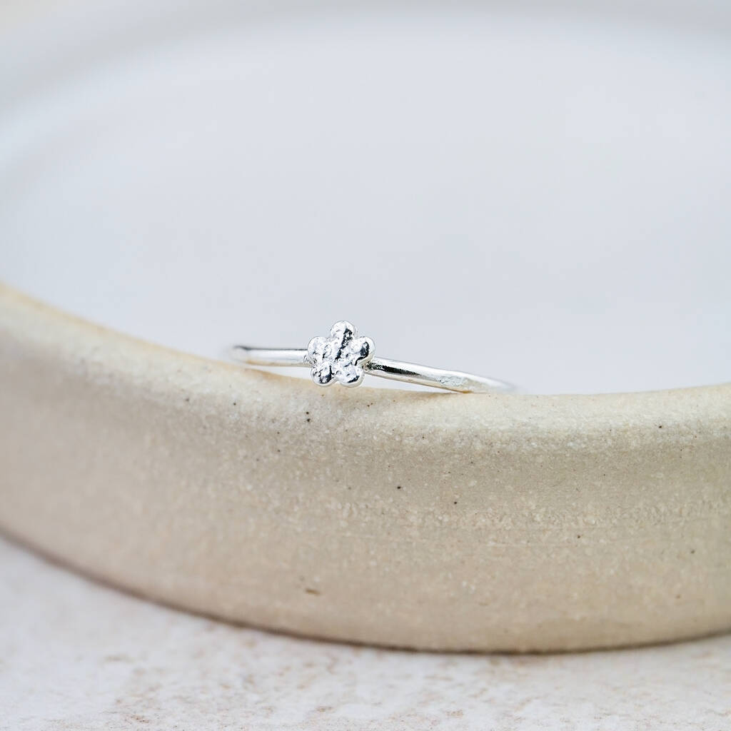 Handmade sterling silver mini flower charm ring.