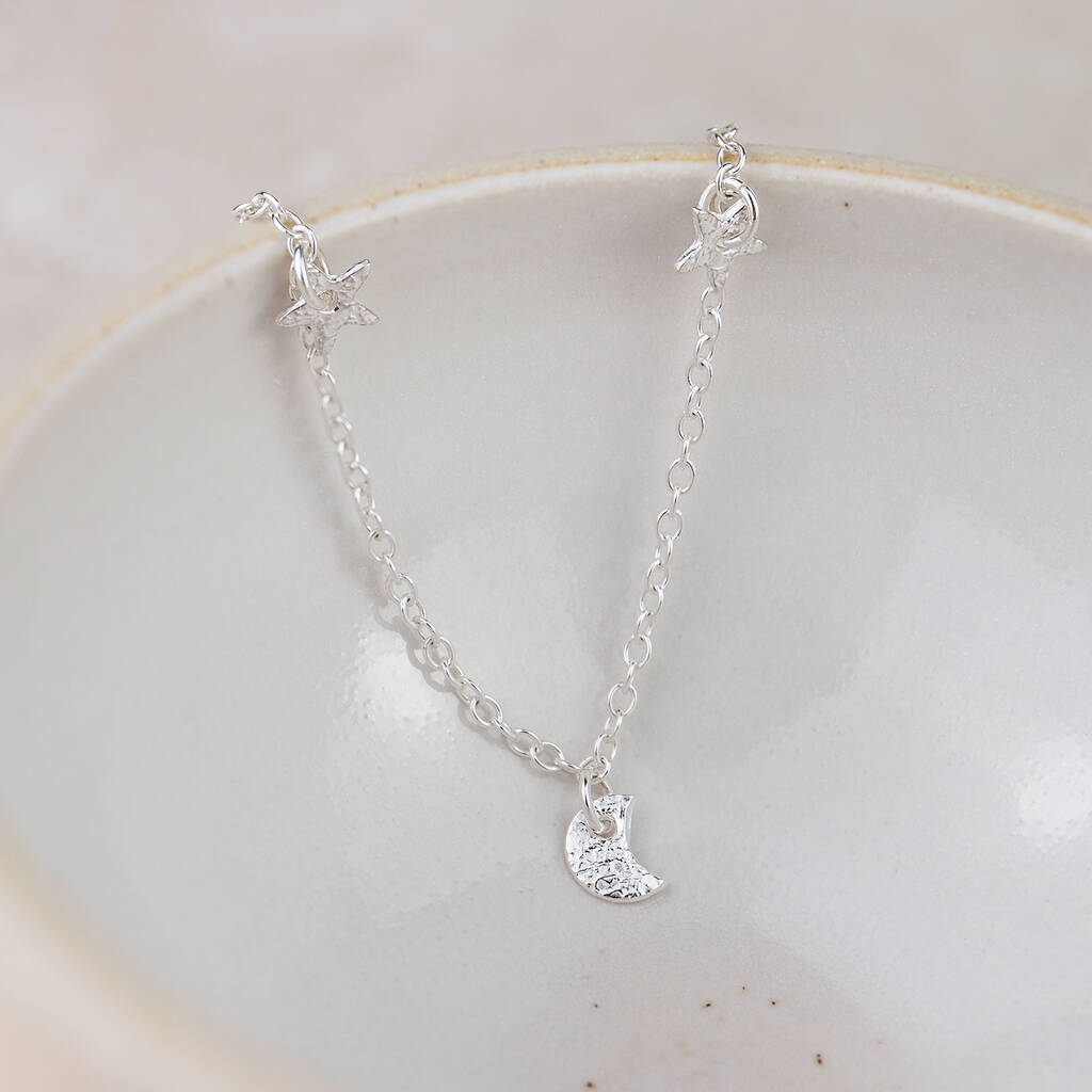 Sterling Silver Short Moon And Star Charm Necklace