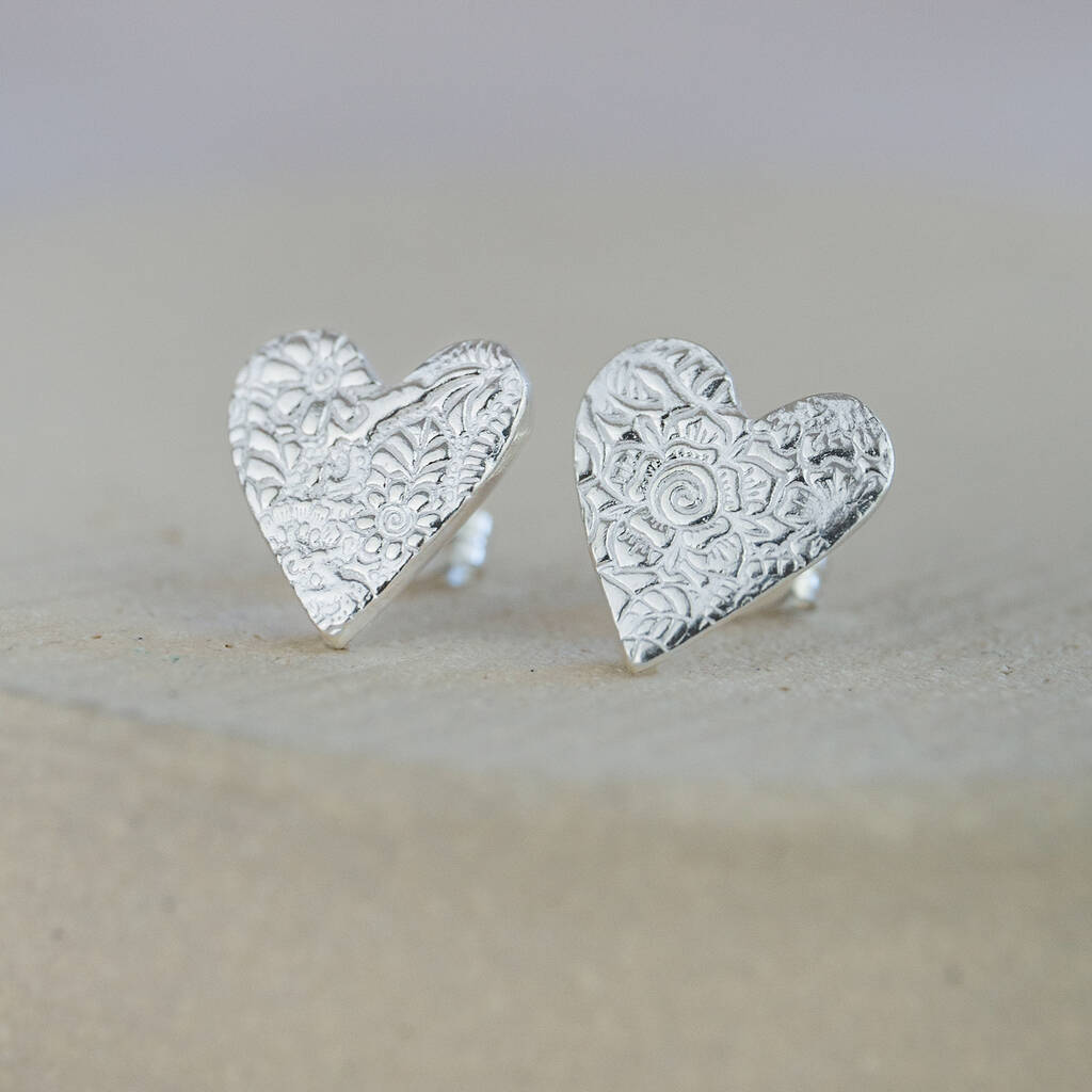 Sterling Silver Textured Heart Studs