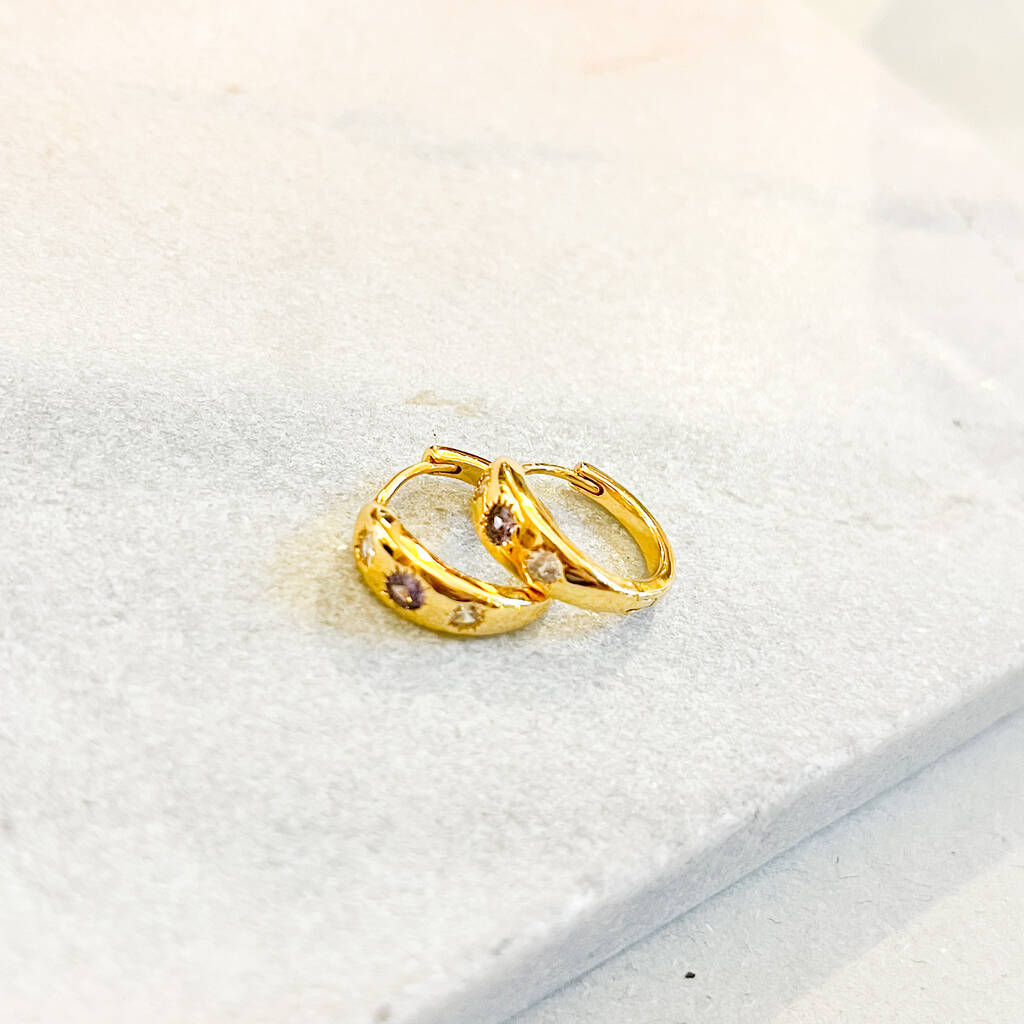 Amethyst Cubic Zirconia Huggie Hoop Earrings