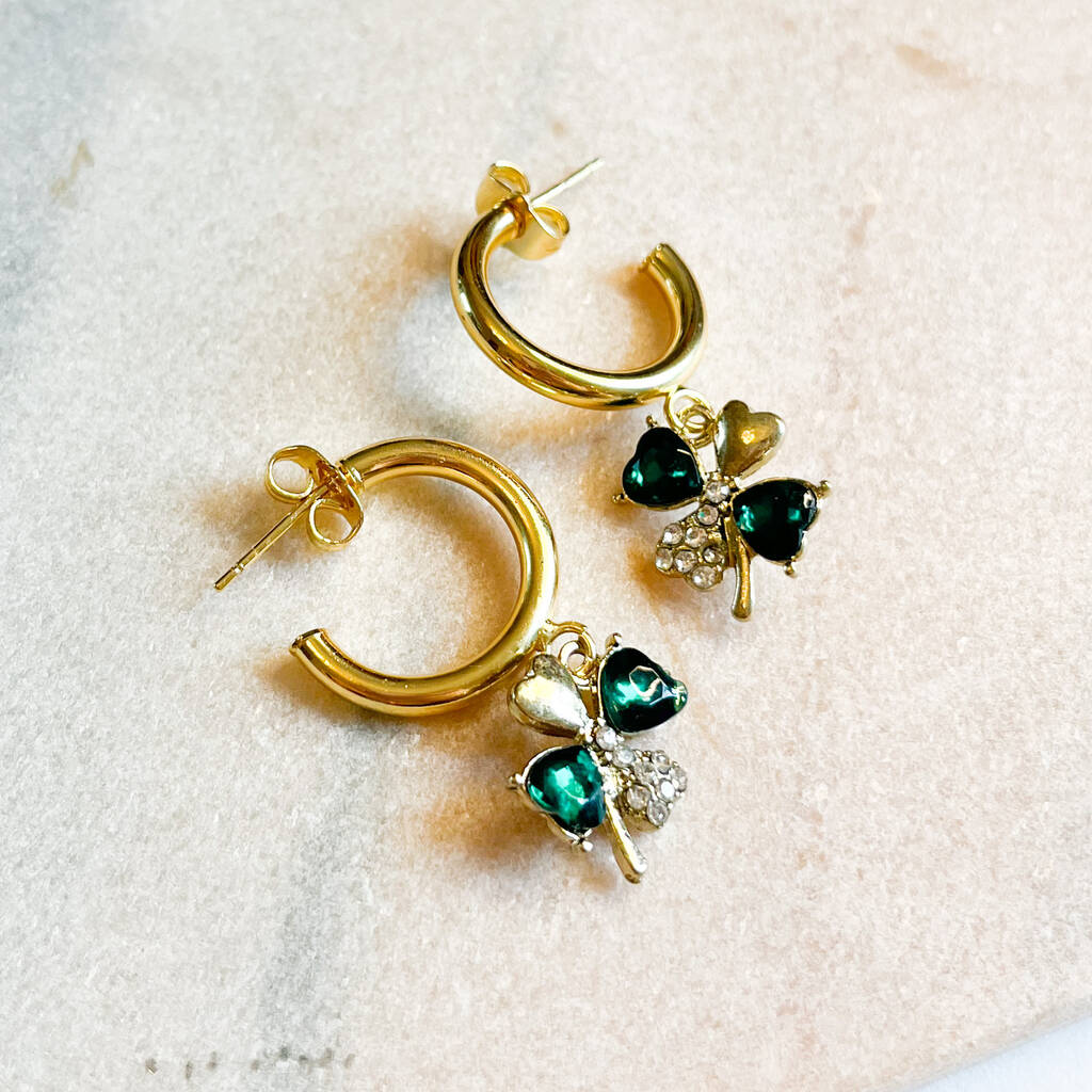 Emerald Green Clover Huggie Hoop Earrings