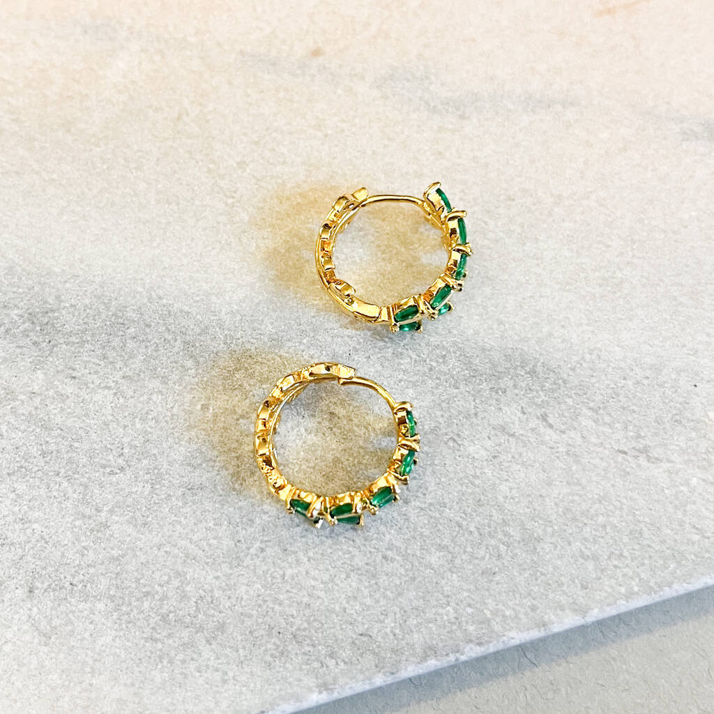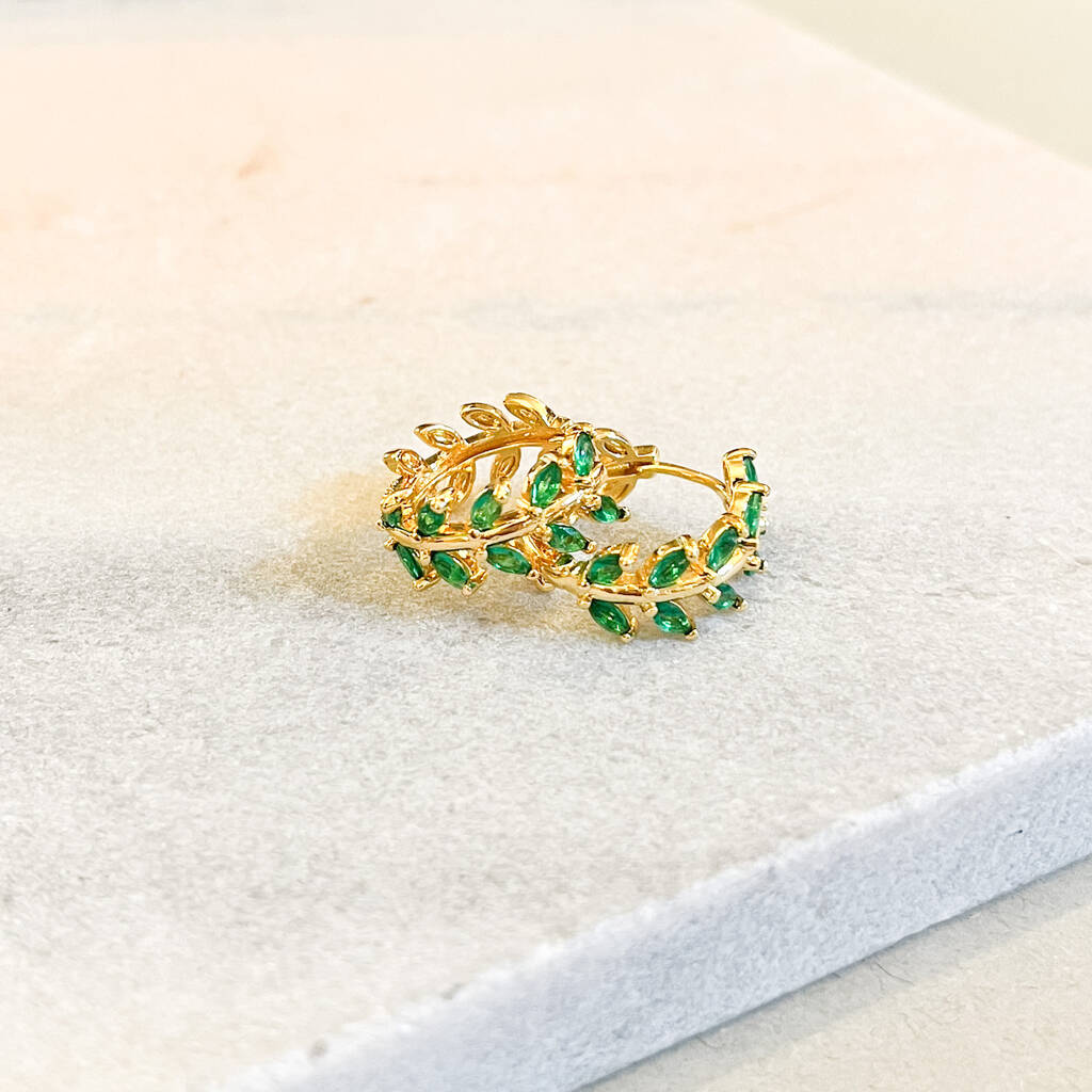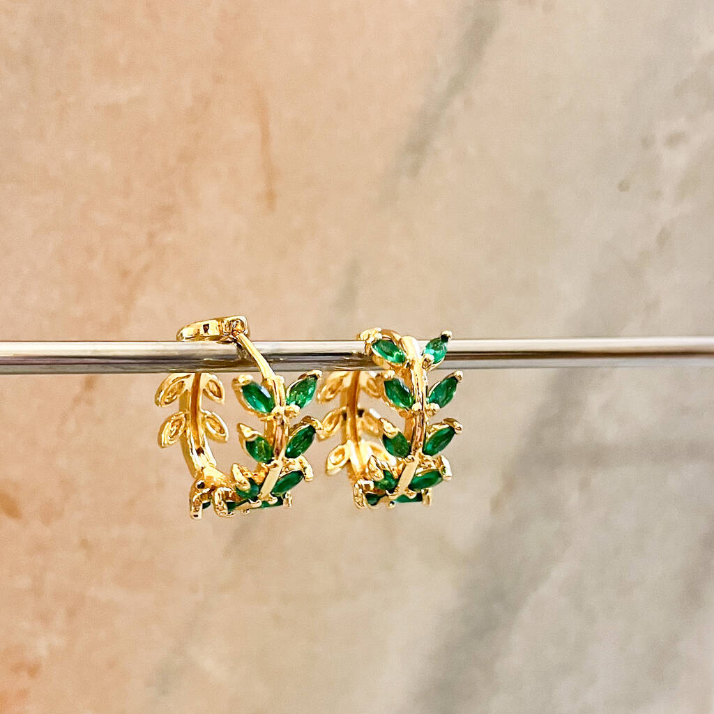 Emerald Green Leaf Huggie Hoop Earrings