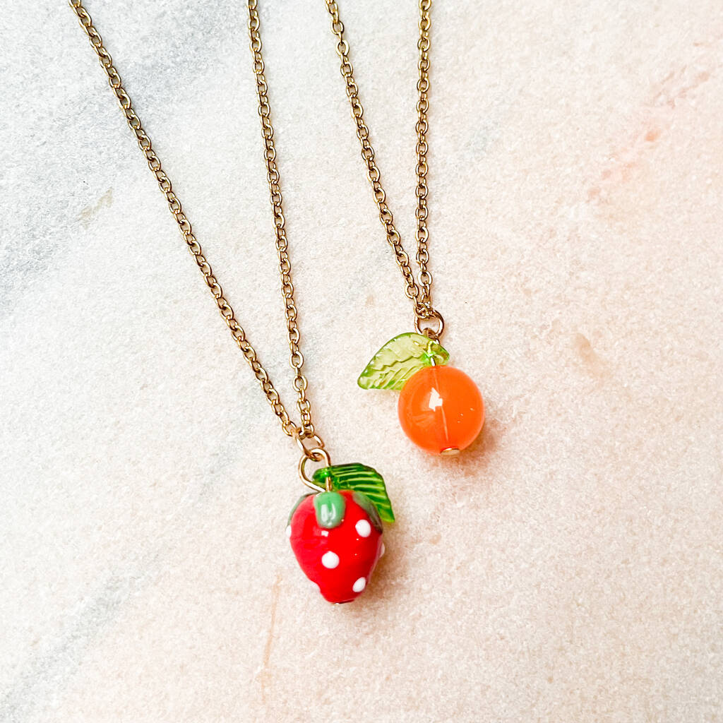 Glass Bead Fruit Charm Necklace