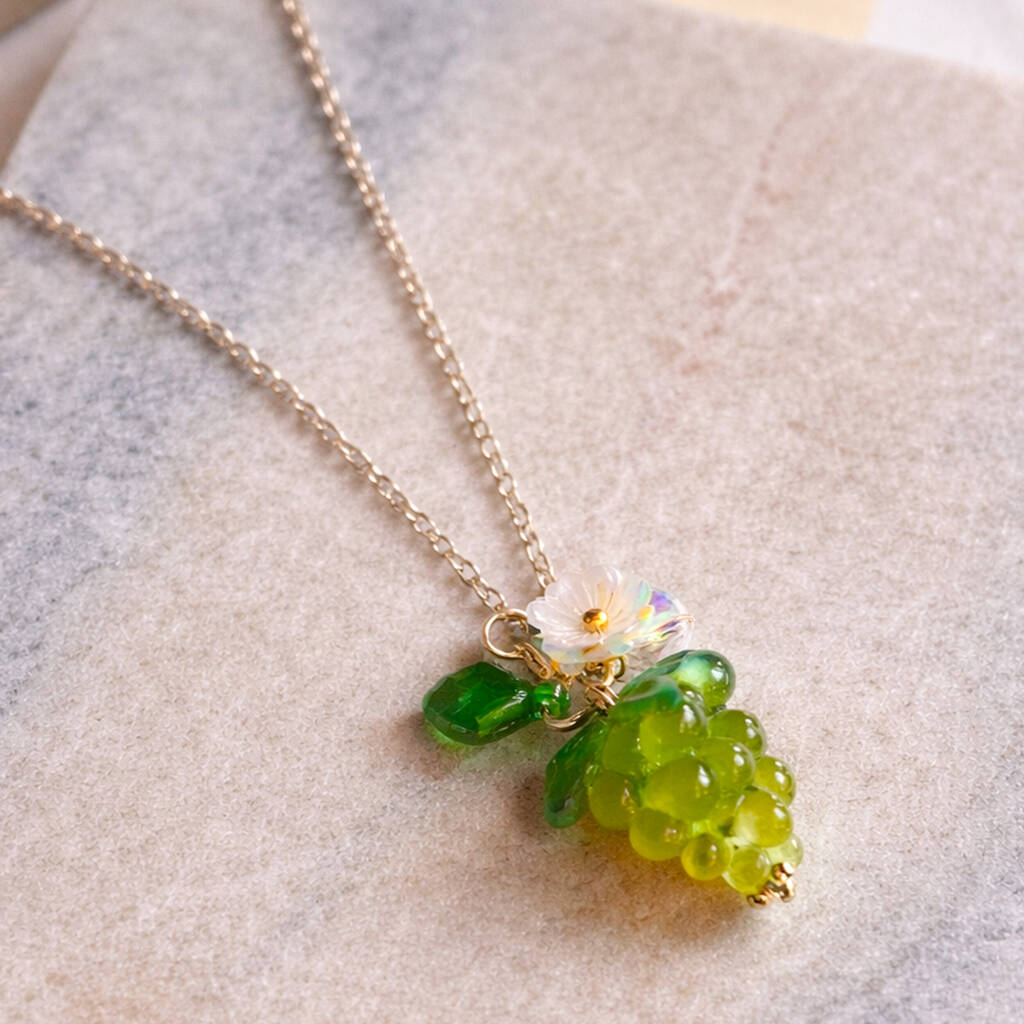 Green Grape Botanical Fruit Pendant Necklace