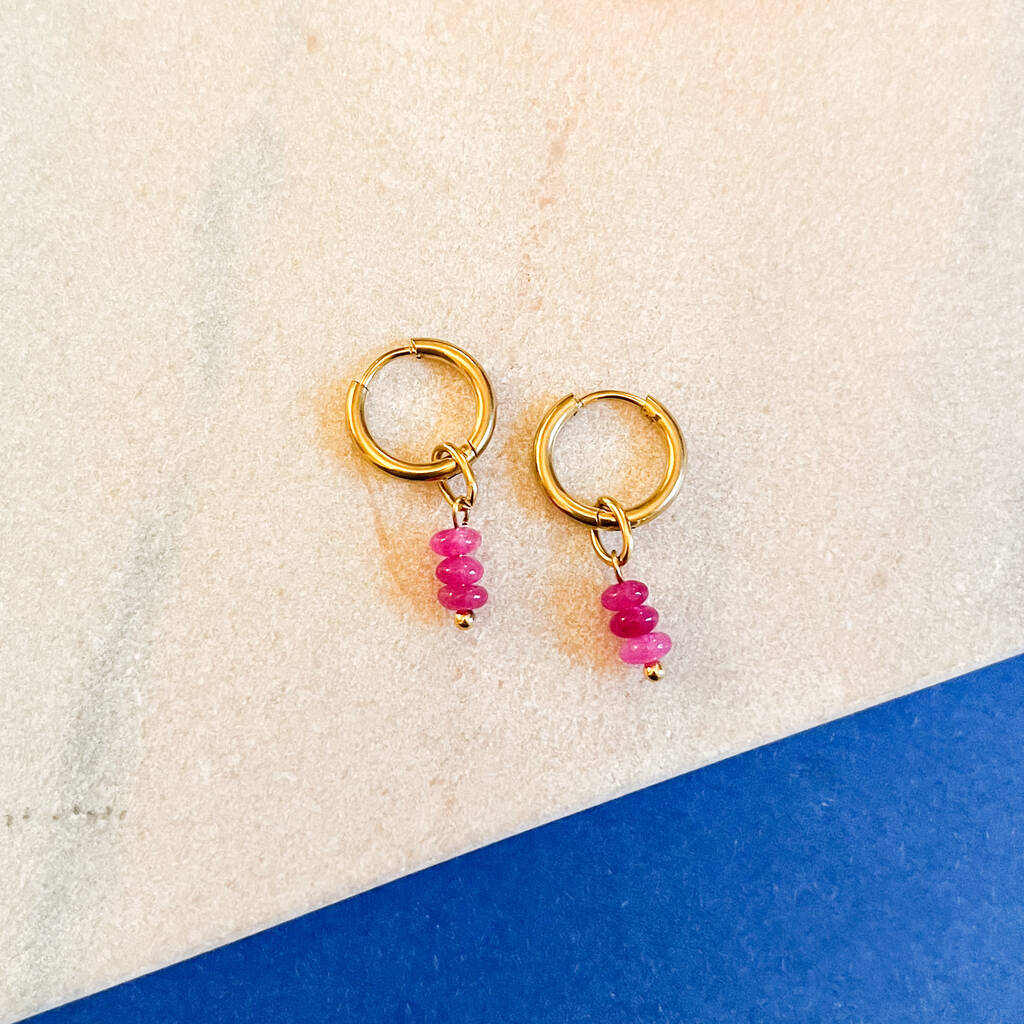 Hot Pink Agate Bead Huggie Hoop Earrings