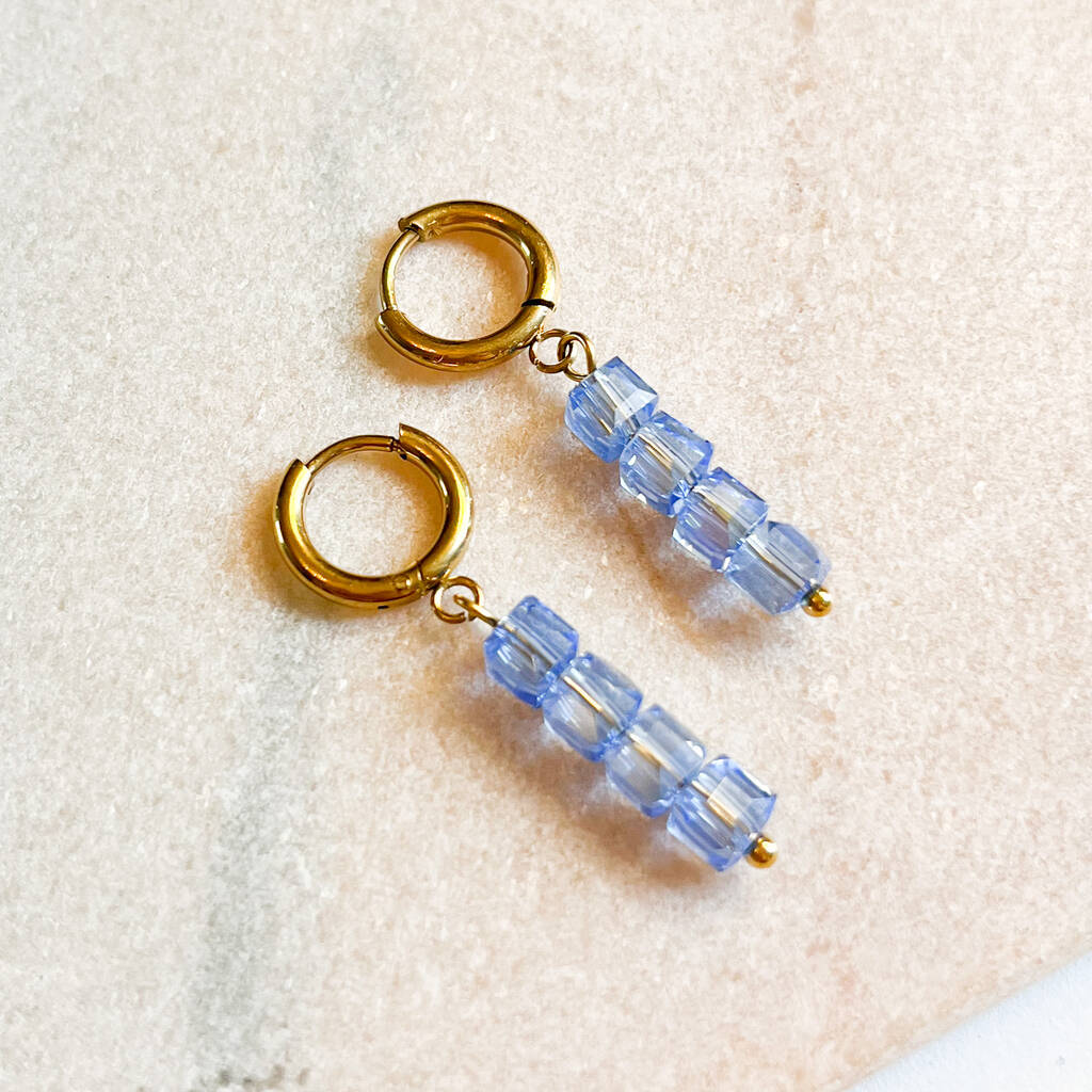 Huggie Hoop Earrings With Blue Glass Bead Drop