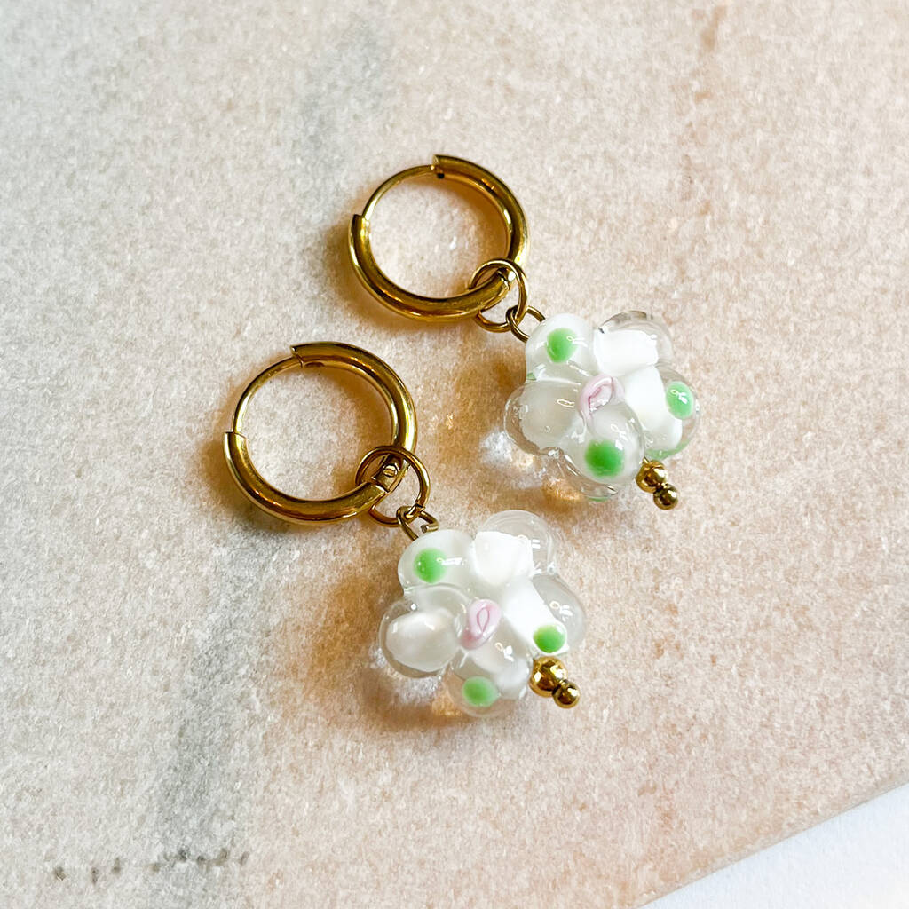 Huggie Hoop Earrings With Glass Flower Charm
