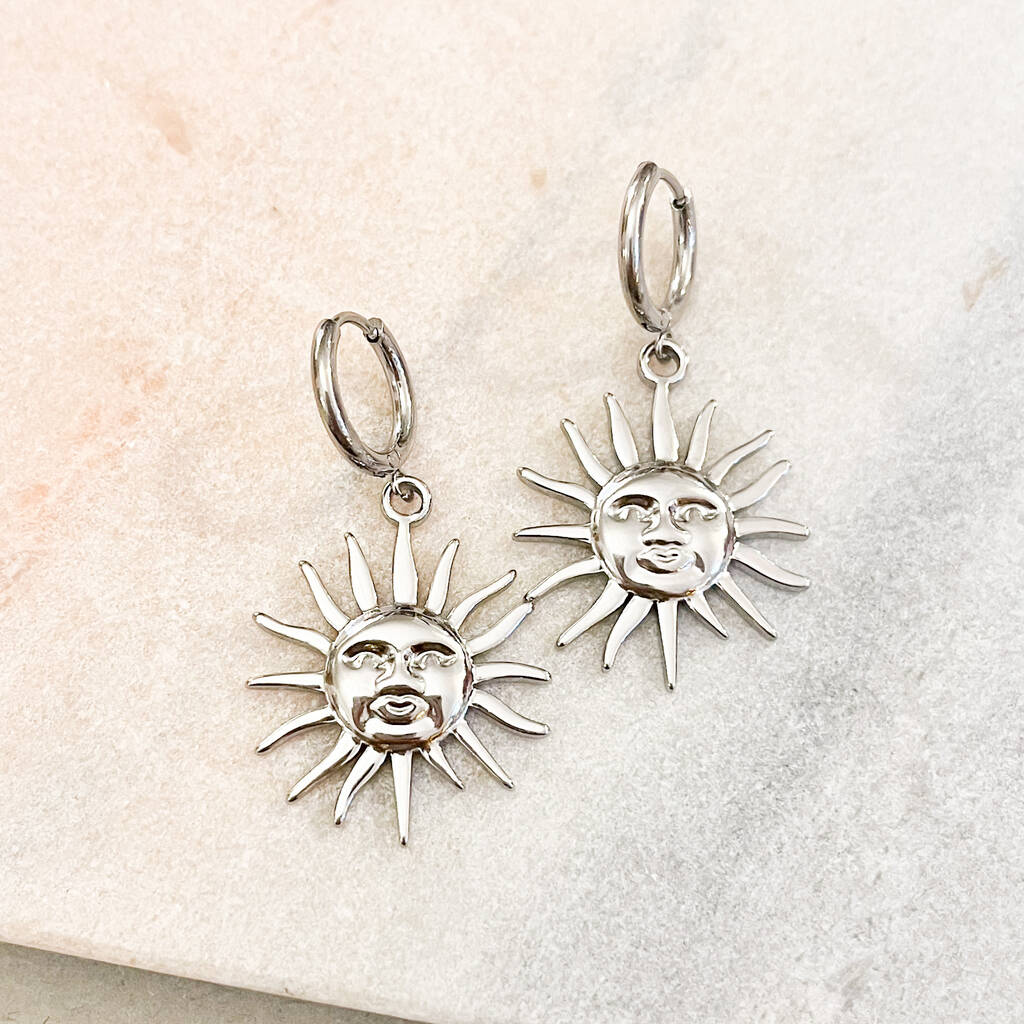 Large Celestial Sun Charm Huggie Hoop Earrings