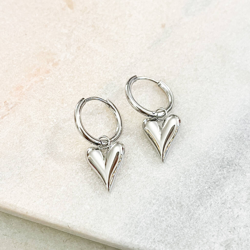Minimalist Puffed Heart Charm Huggie Hoop Earrings