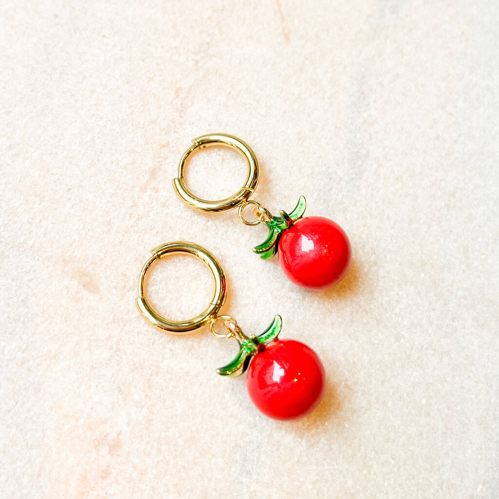 Red Tomato Charm Hoop Earrings