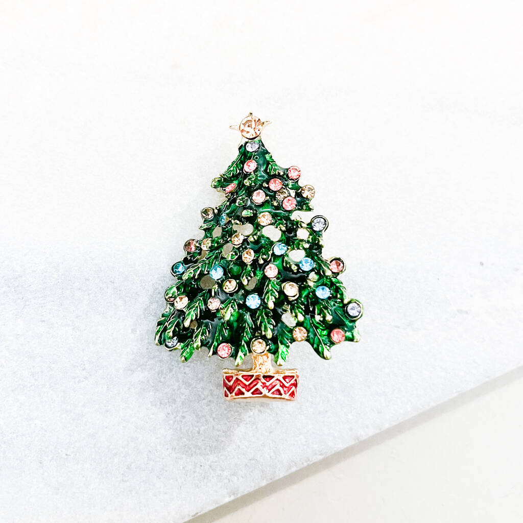 Sparkling Enamel Christmas Tree Brooch With Multi Coloured Gems