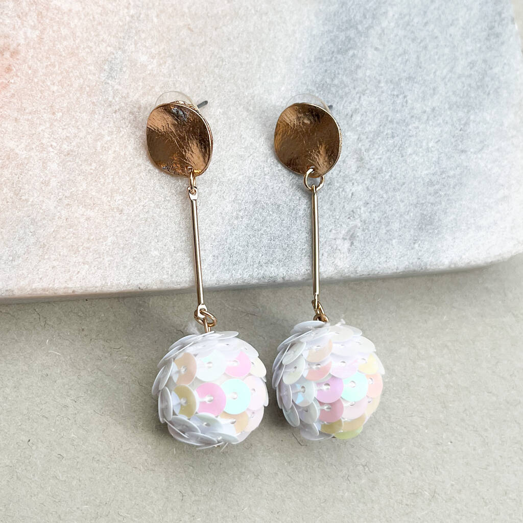 Statement Drop Earrings With Iridescent Sequin Balls