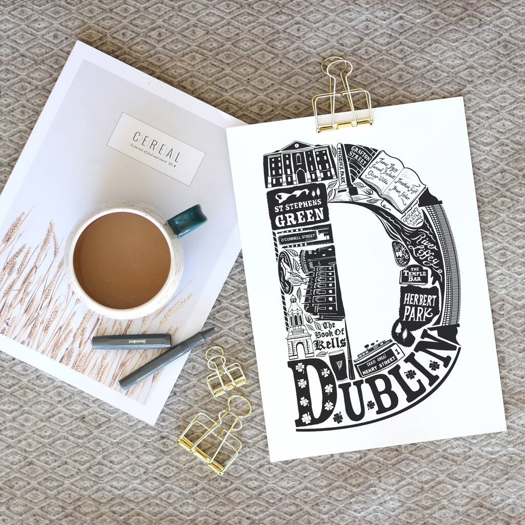 Lovingly drawn by designer, Lucy Stephens, this hand drawn print celebrates all the great things about Dublin.