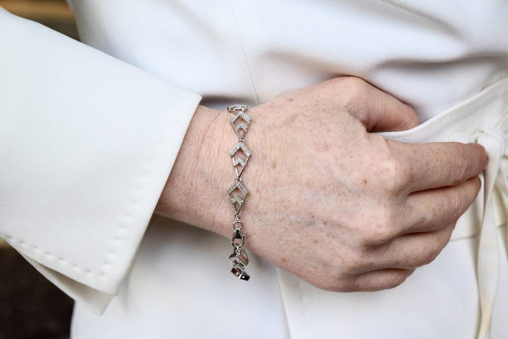 A timeless Art Deco-inspired bracelet crafted from sterling silver and white topaz gemstones — combining vintage sophistication with modern British design.