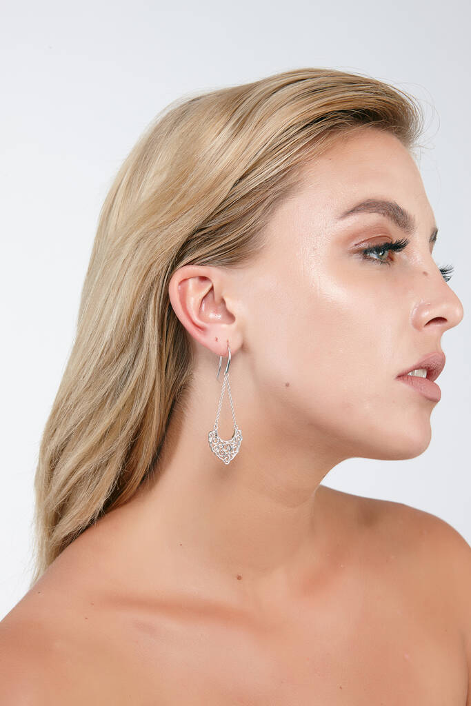 These graceful Art Nouveau Drop Earrings are inspired by the natural elements of air and fire. Handcrafted in 925 sterling silver with intricate filigree detailing, they offer a striking yet lightweight design that’s effortless to wear. The elongated shepherds crook fastening provides extra security and comfort, making them perfect for all-day elegance.