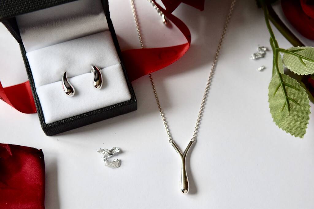 A sleek sterling silver or gold Vermeil wishbone shaped drop pendant with a modern, elegant silhouette. Fully adjustable and perfect for everyday wear or gifting.