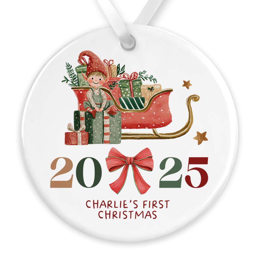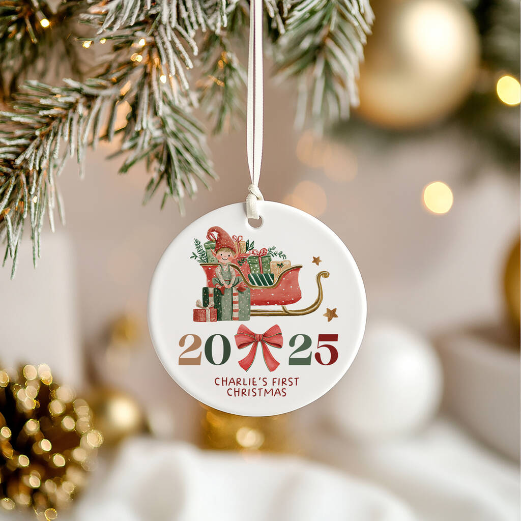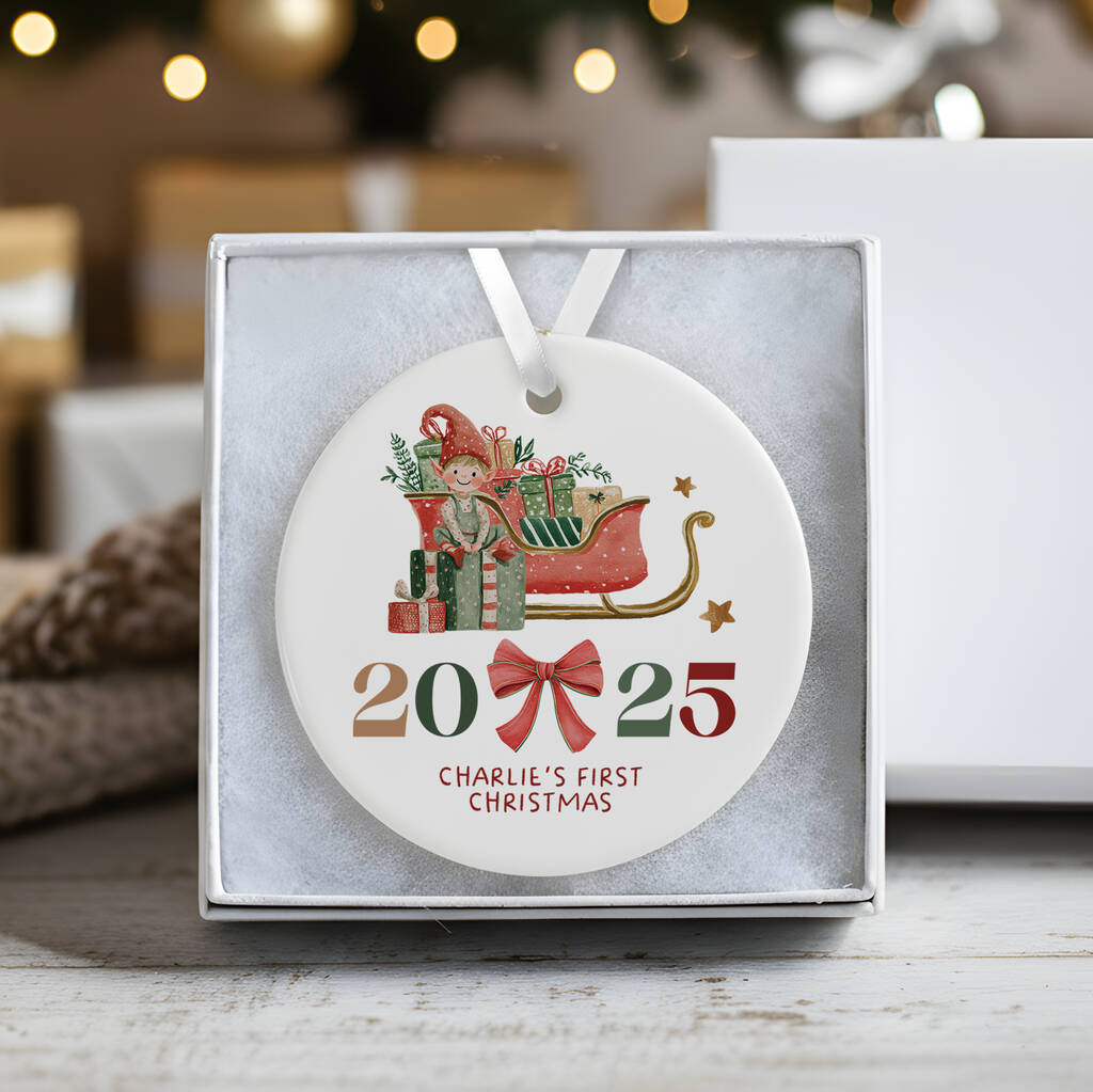Personalised 2025 Baby's First Christmas Bauble Gift