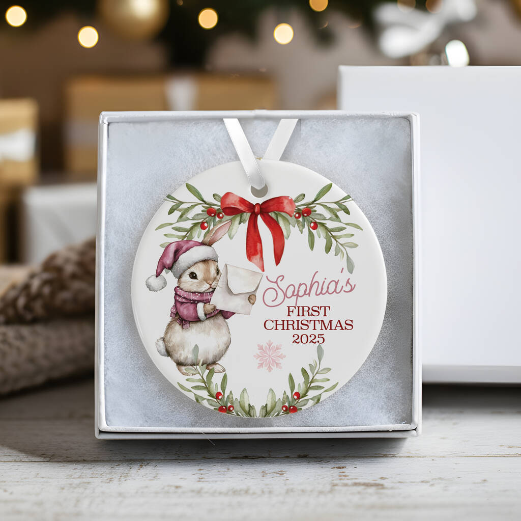 Personalised Baby's First Christmas Keepsake Ornament In Pink, Blue Or Red