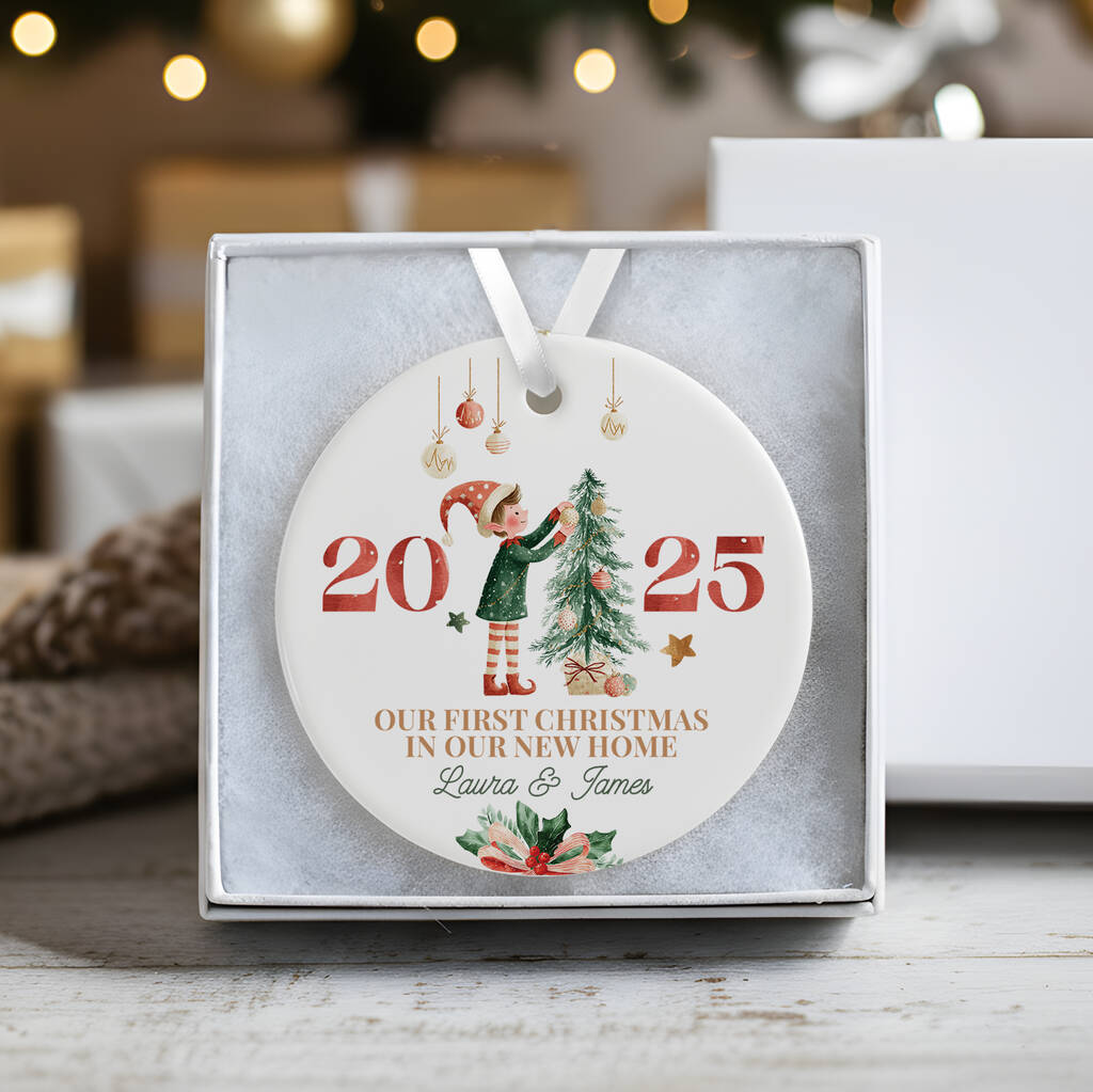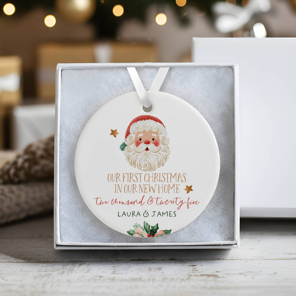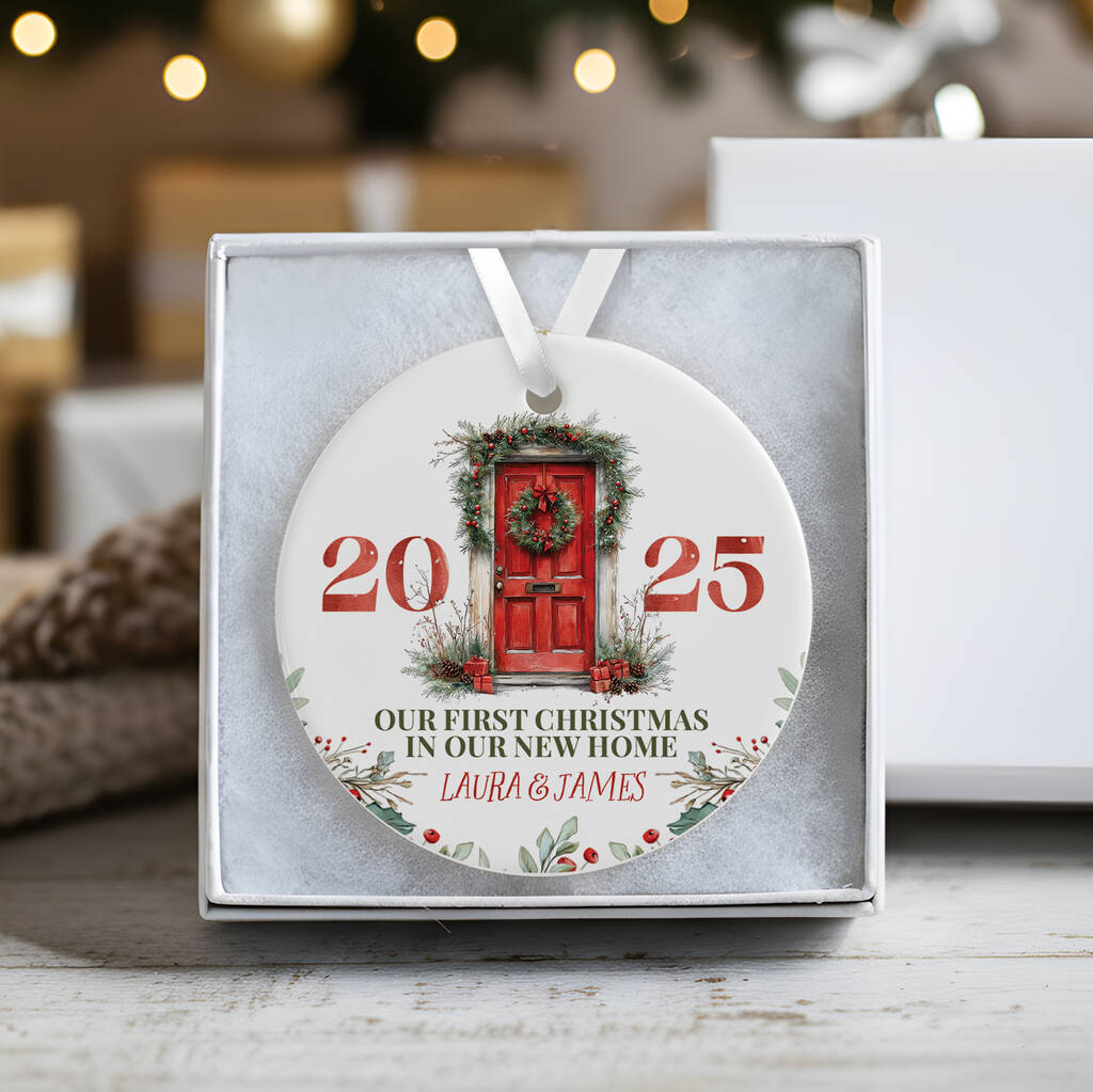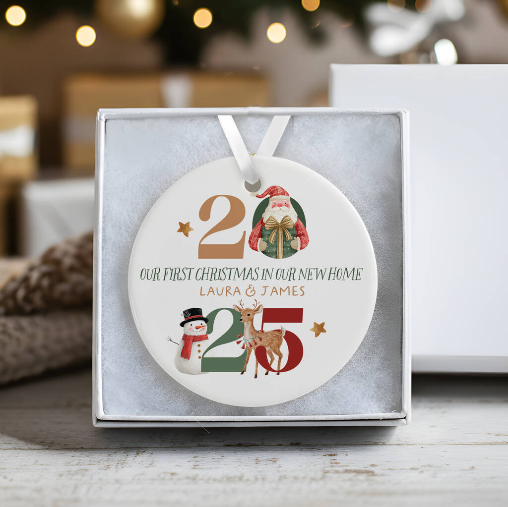 Personalised Ceramic First Christmas In Our New Home Decoration In Various Designs