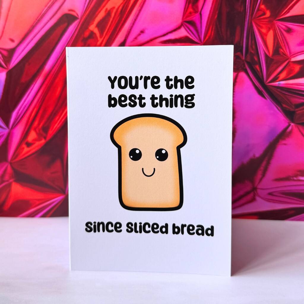 Funny Valentine’s Day A6 card “You’re The Best Thing Since Sliced Bread” printed on premium 300gsm card