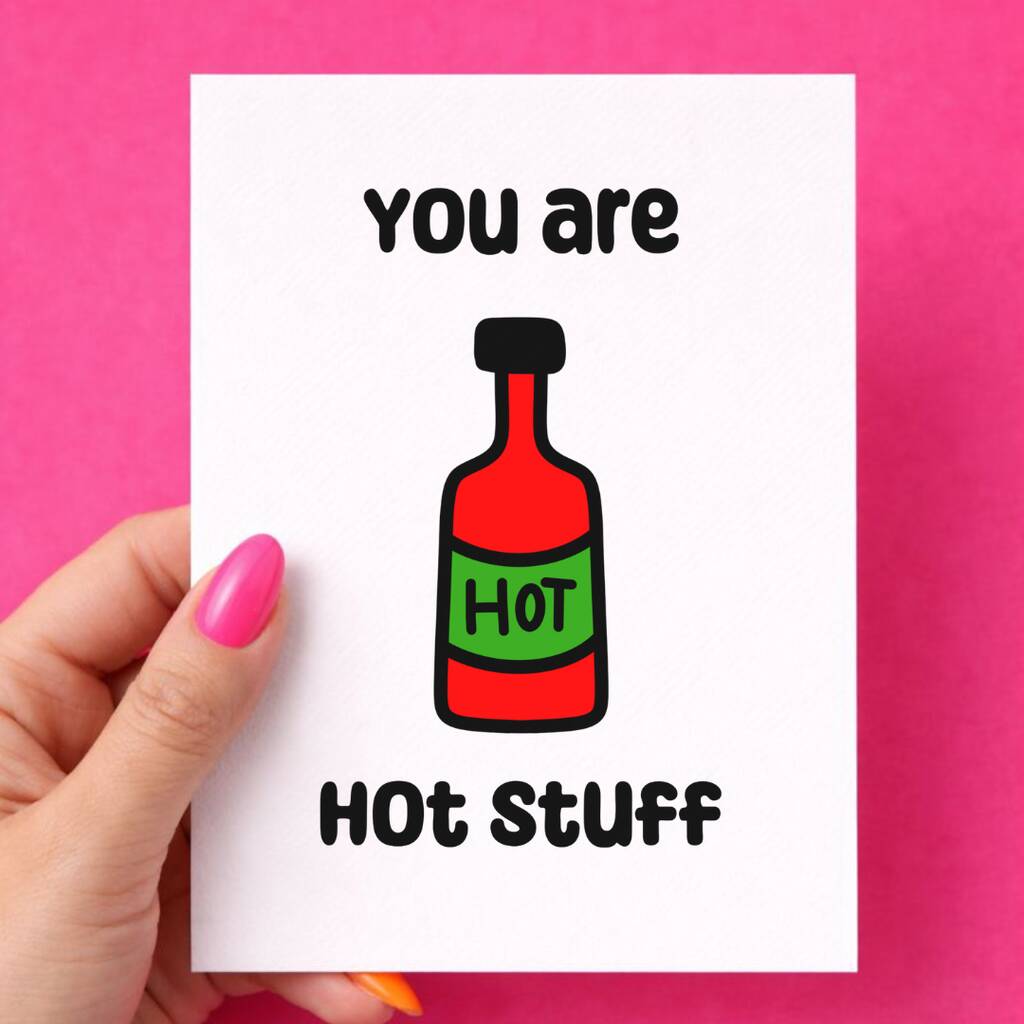 Featuring our “Hot Stuff” hot sauce Valentine’s design, it’s the perfect funny card for someone you fancy, love, or can’t get enough of.