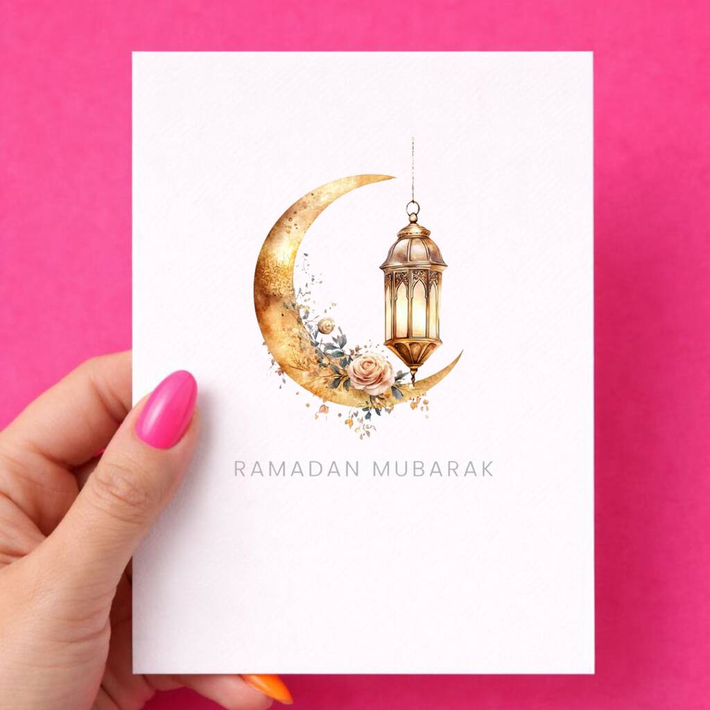 Ramadan Mubarak Card Moon And Lantern Design