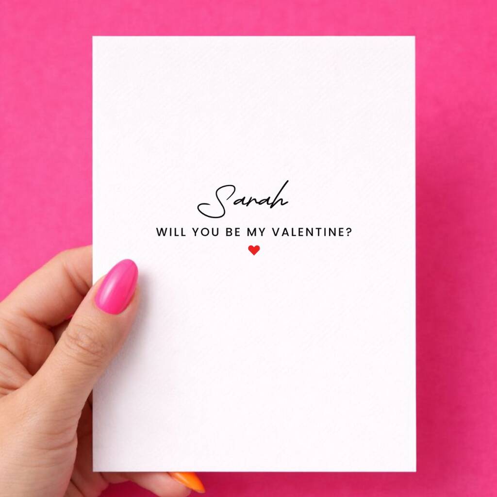 Valentine’s Day A6 “Will You Be My Valentine” personalised greeting card on premium 300gsm card.