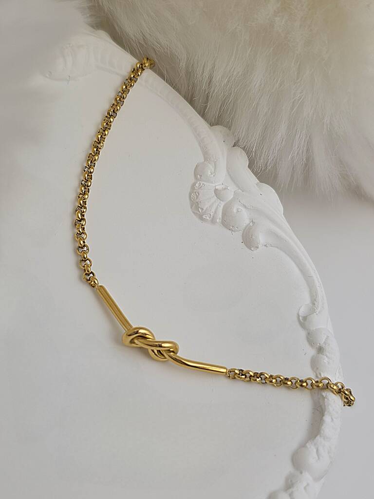 18k Gold Knot Bracelet With Adjustable Dainty Belcher Chain Or Rolo Chain Waterproof Stainless Steel, Valentine’s Gift For Her
