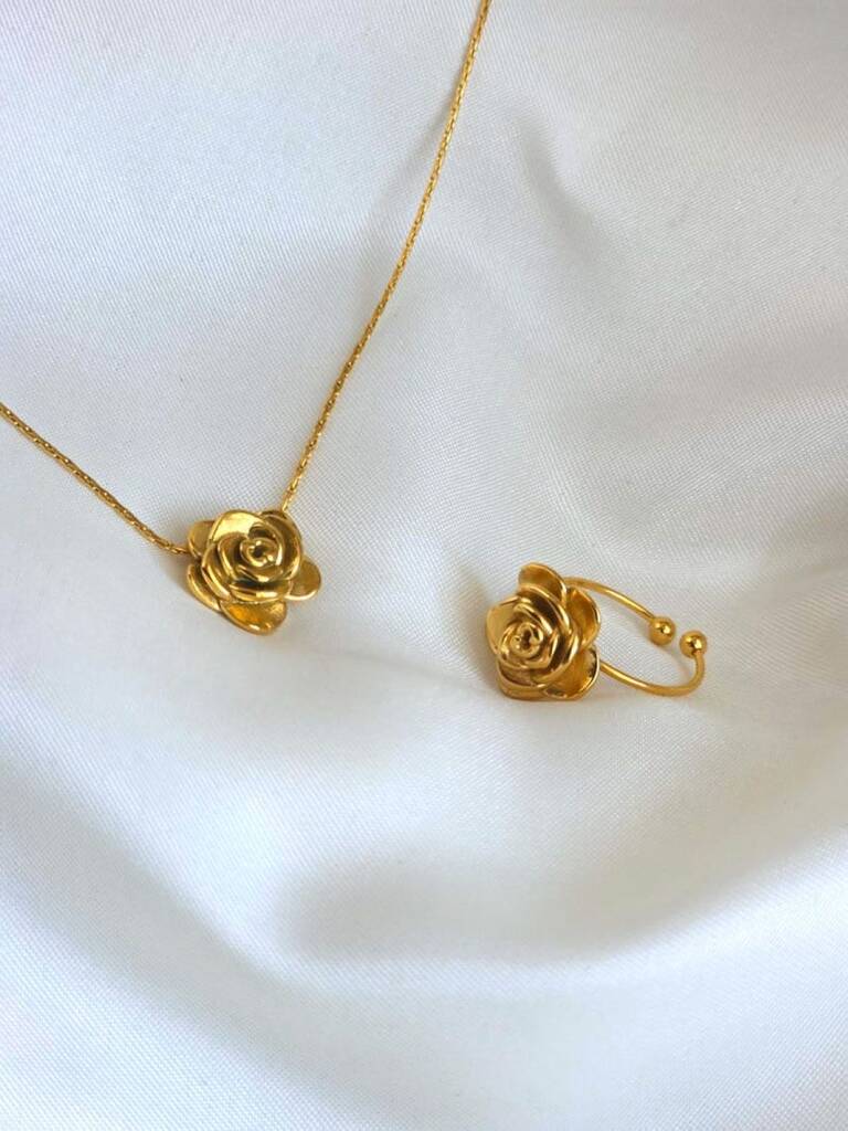 Adjustable Rose Ring Floral Raised Design, 18k Gold Stainless Steel, Waterproof Jewellery
