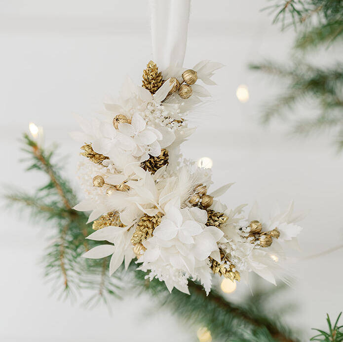 • Gold Crescent Moon Dried Flower Christmas Bauble, thumbnail 1 of 4