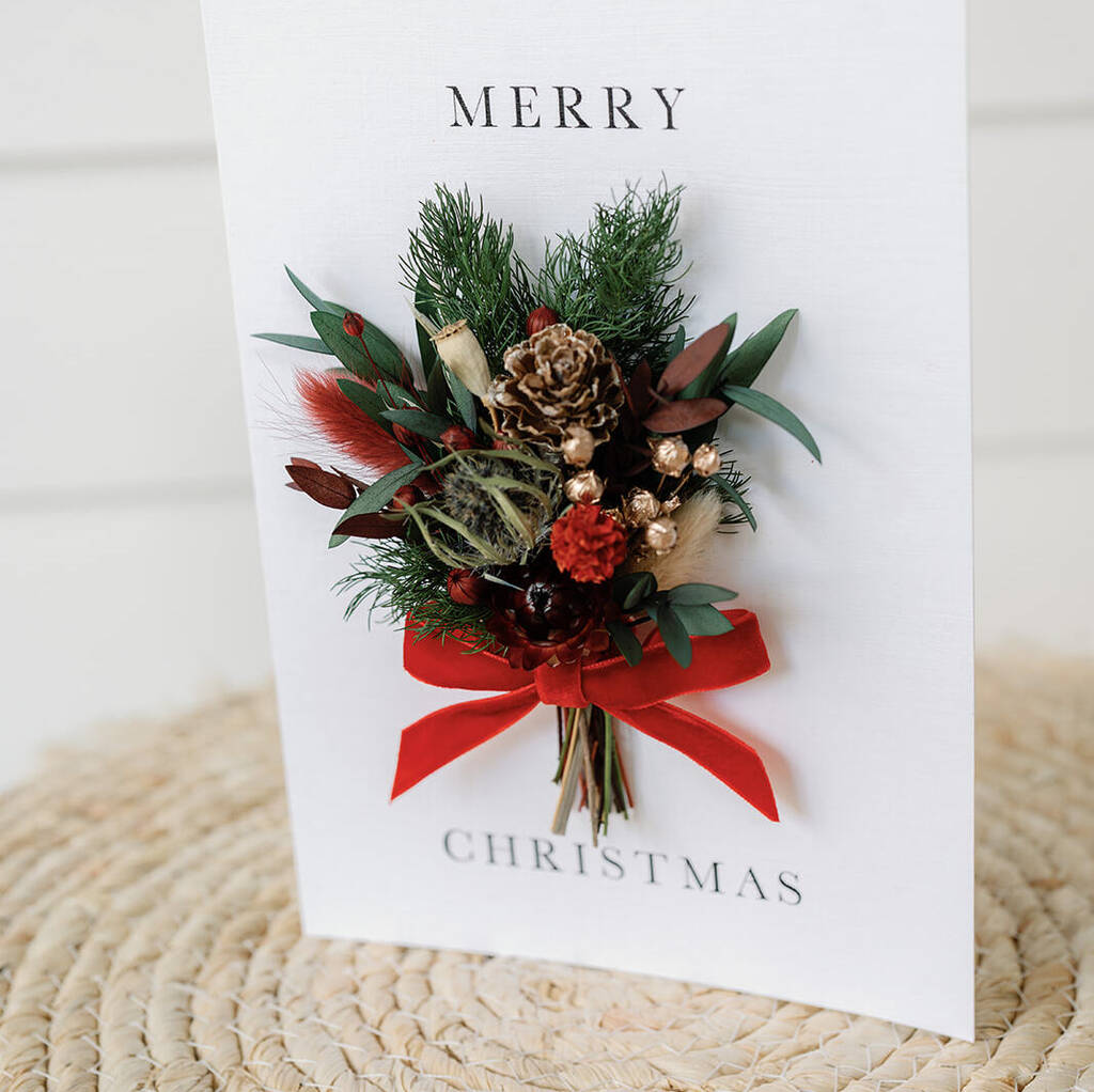Merry Christmas Dried Flower Bunch Greetings Card