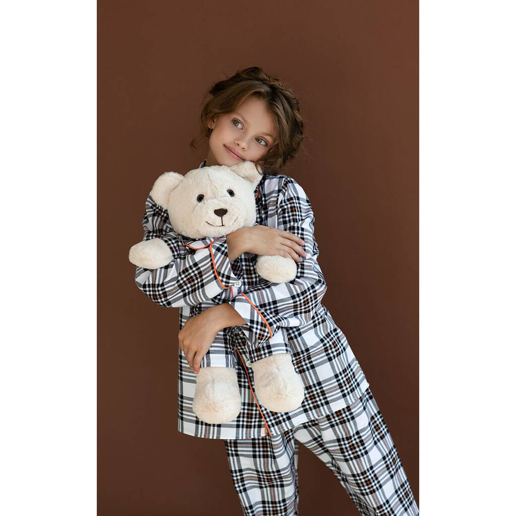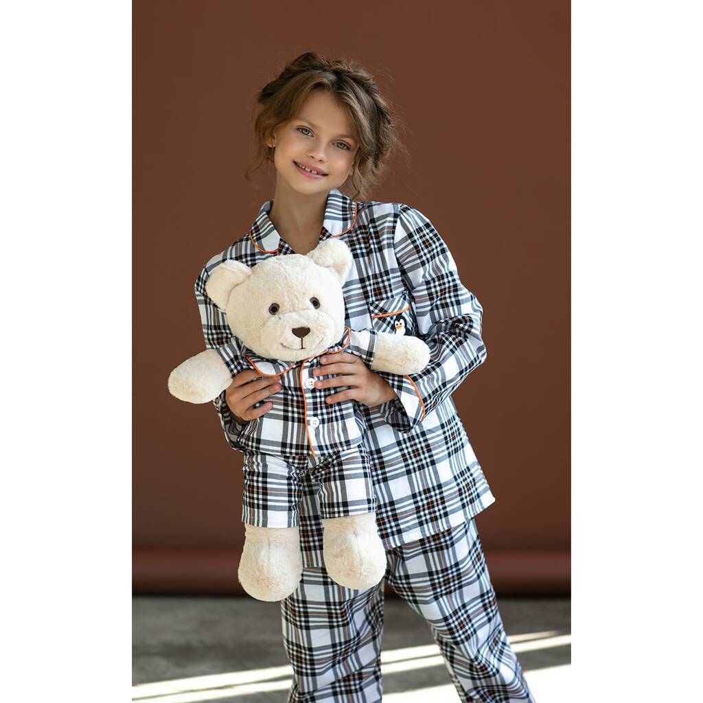 Classic cotton pyjama set with a matching teddy bear—crafted for comfort, play, and sweet dreams. Perfect as a bedtime gift for children.Crafted from 100% premium cotton, the Alle Pyjama Set combines comfort with playful charm. The timeless black, white, and orange plaid design ensures breathable wear all night, while the set includes a cuddly Luna Mia teddy bear dressed in matching pyjamas. Specially designed with safe embroidery details, the bear is CE and EN71 certified, free from harmful substances, and hand washable. Delivered in a stylish gift box, this set makes bedtime fun and cozy, offering both children and their sleep companion a joyful night’s rest.