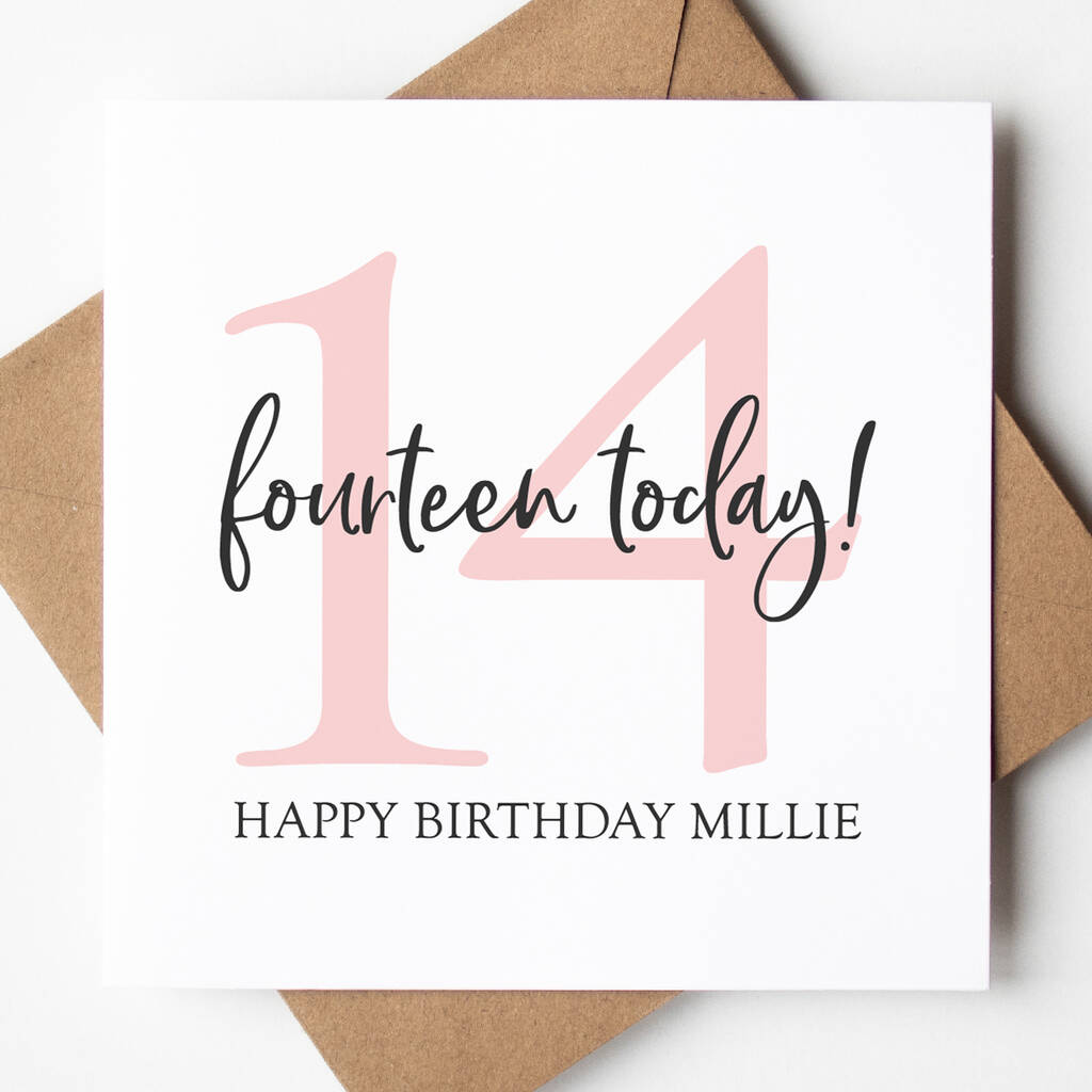 A beautifully simple personalised birthday card for ages 11–17, with soft pink numbers, elegant script, and their name for a thoughtful, age-appropriate keepsake.