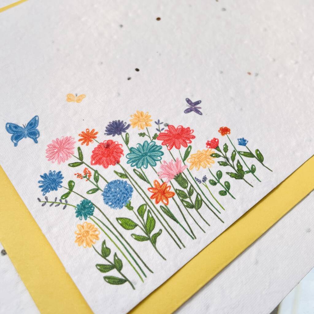 Make your next handwritten note extra special with my floral plantable note cards. A wonderful eco-friendly writing set with a bright and cheerful floral design and a discreet message about being plantable. Pack of 12 A6 flat note cards made from eco-friendly 250-280gsm handmade plantable seed card, with recycled Kraft or recycled yellow envelopes. After reading your recipient can plant this card instead of recycling and watch it bloom!