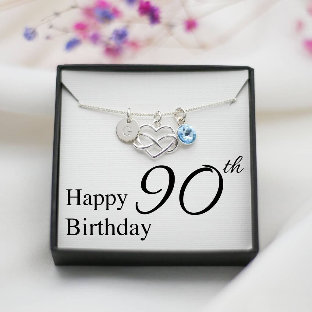 90th Birthday Necklace – Sterling Silver Heart Infinity Charm