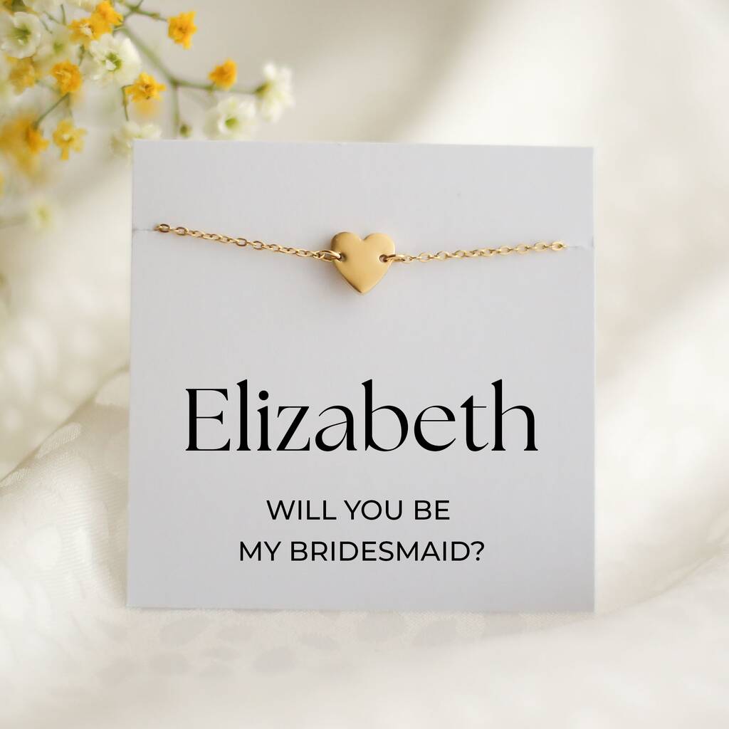 Bridesmaid Gift, Heart Birthstone Bracelet With Custom Card
