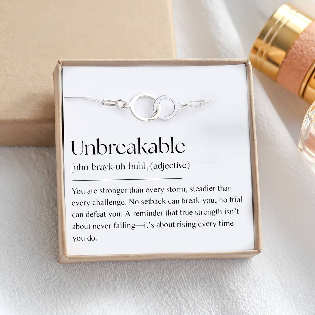 A powerful bracelet with an “UNBREAKABLE” message card – a meaningful gift of strength and encouragement.