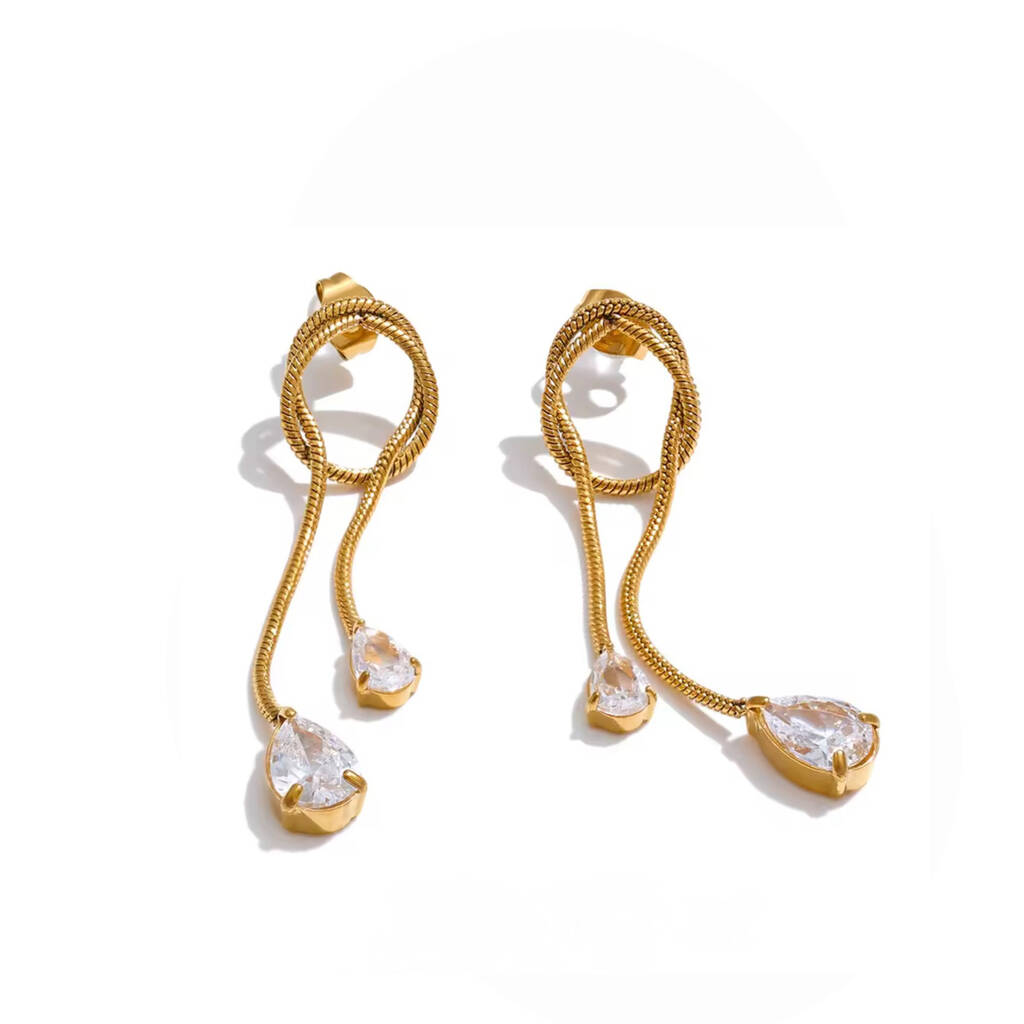 18k Gold Plated Chain Earrings With Teardrop Crystals