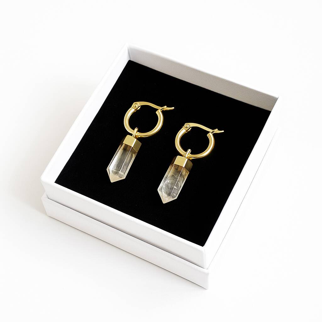 18 K Gold Plated Earrings With Citrine Crystal Points