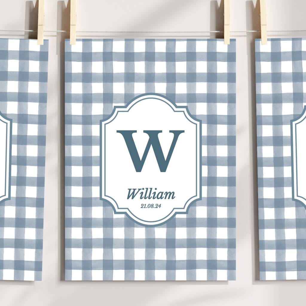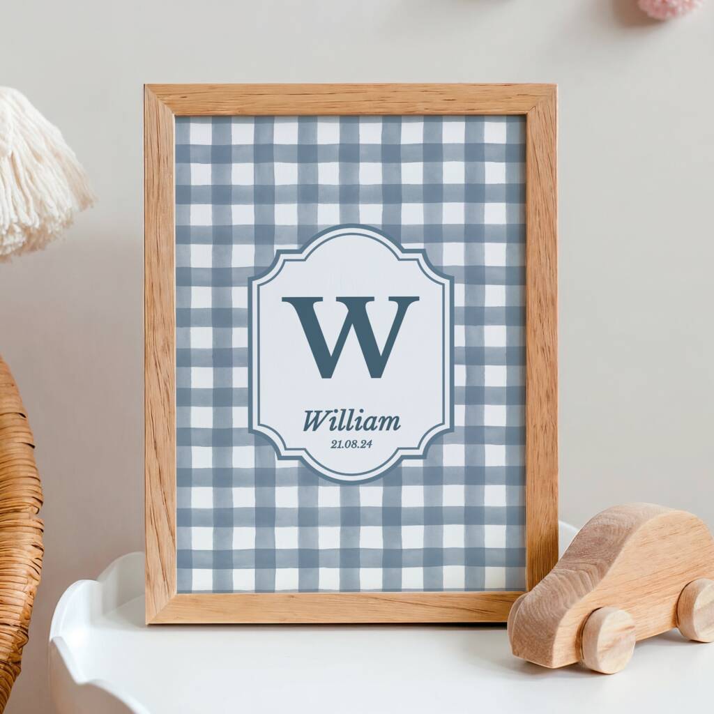 Personalised Blue Gingham Art Print