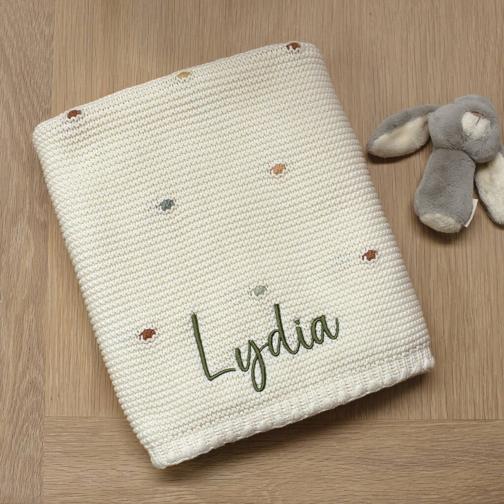 Personalised Knitted Baby Blanket In Multi Colour Bobble