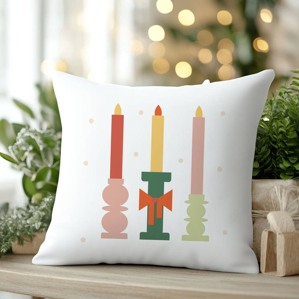 Festive Candle Trio Christmas Cushion