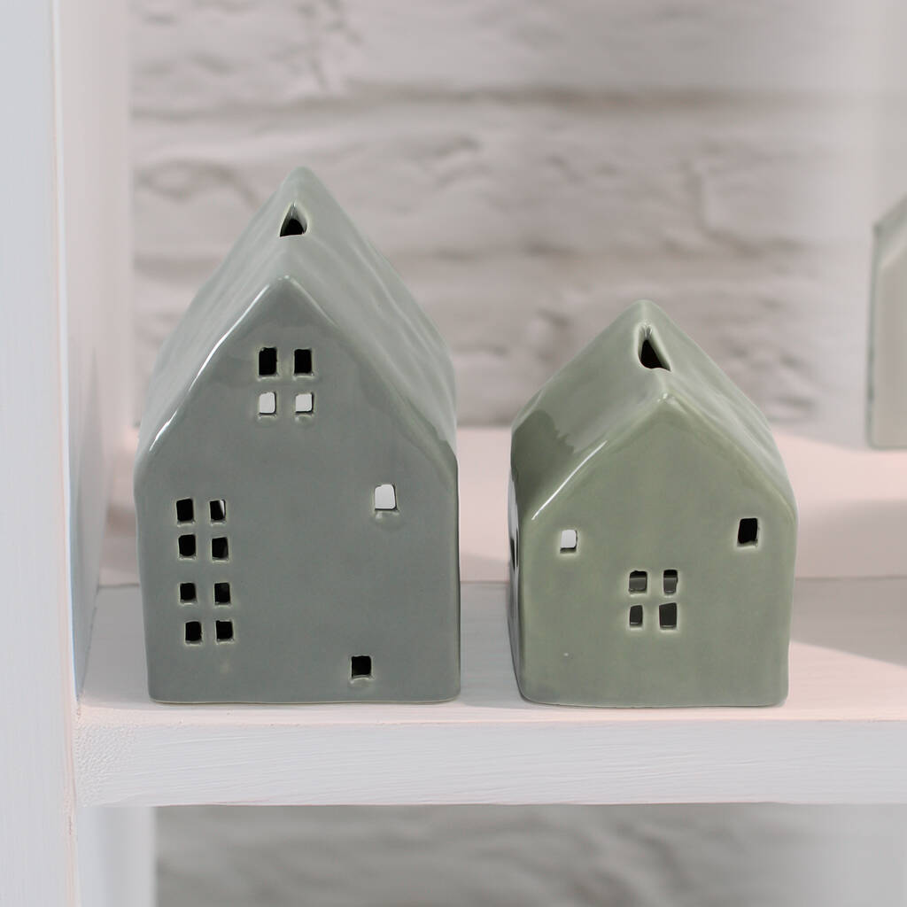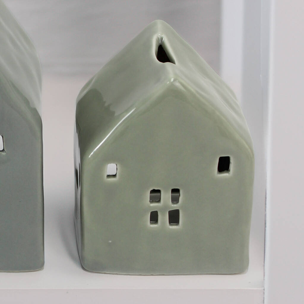 Glazed Ceramic Candle House In Sage Green Or Teal