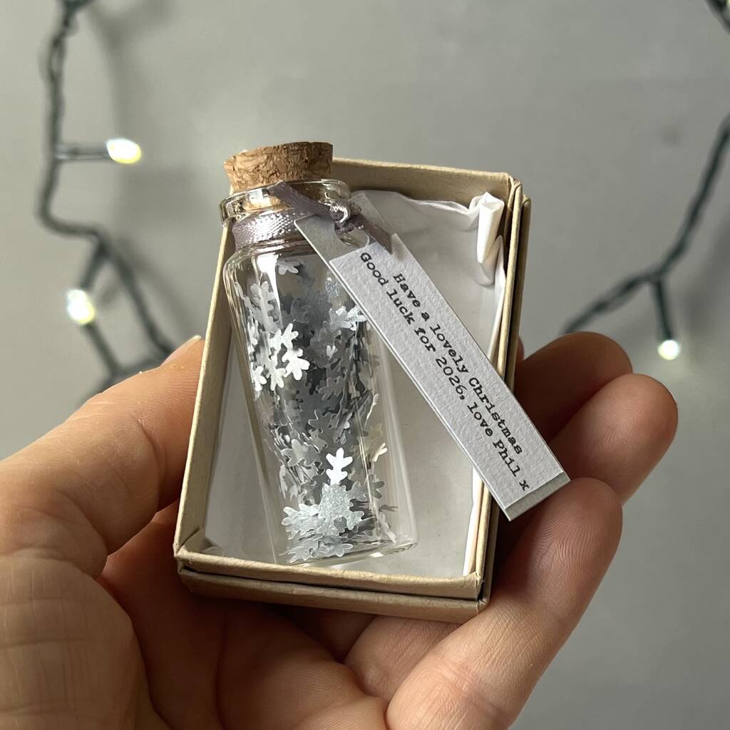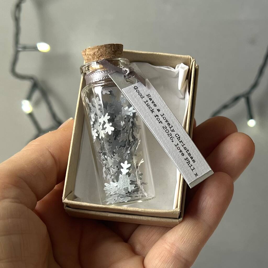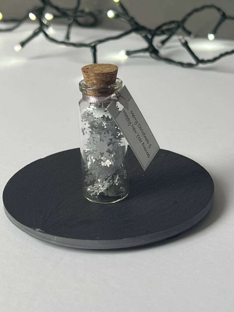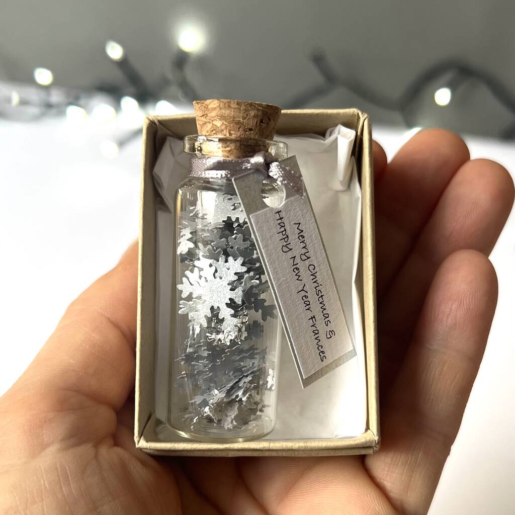 Miniature Bottle Of Silver Snowflakes Christmas Keepsake