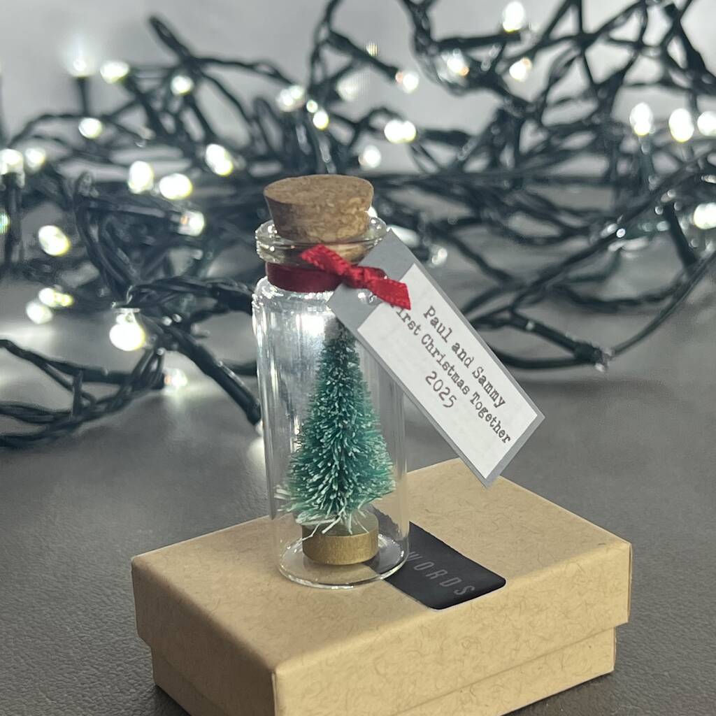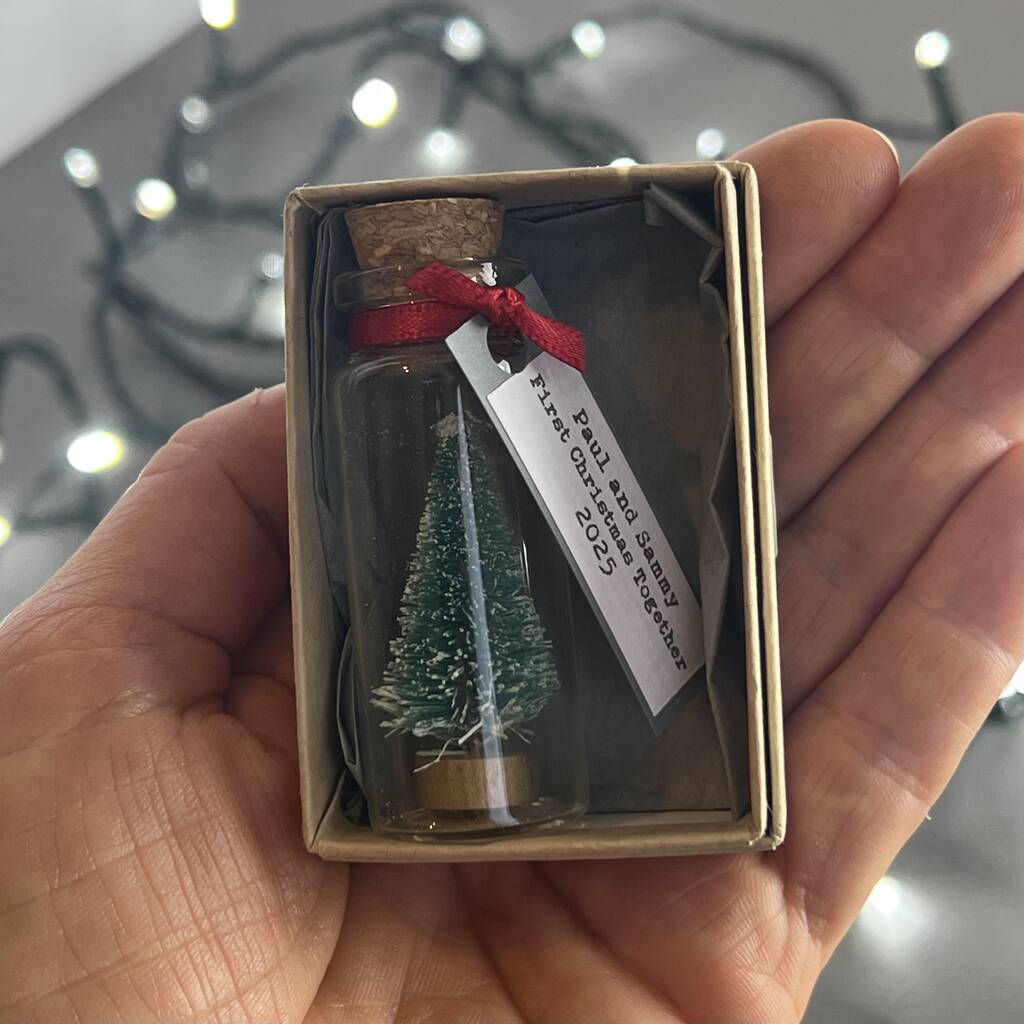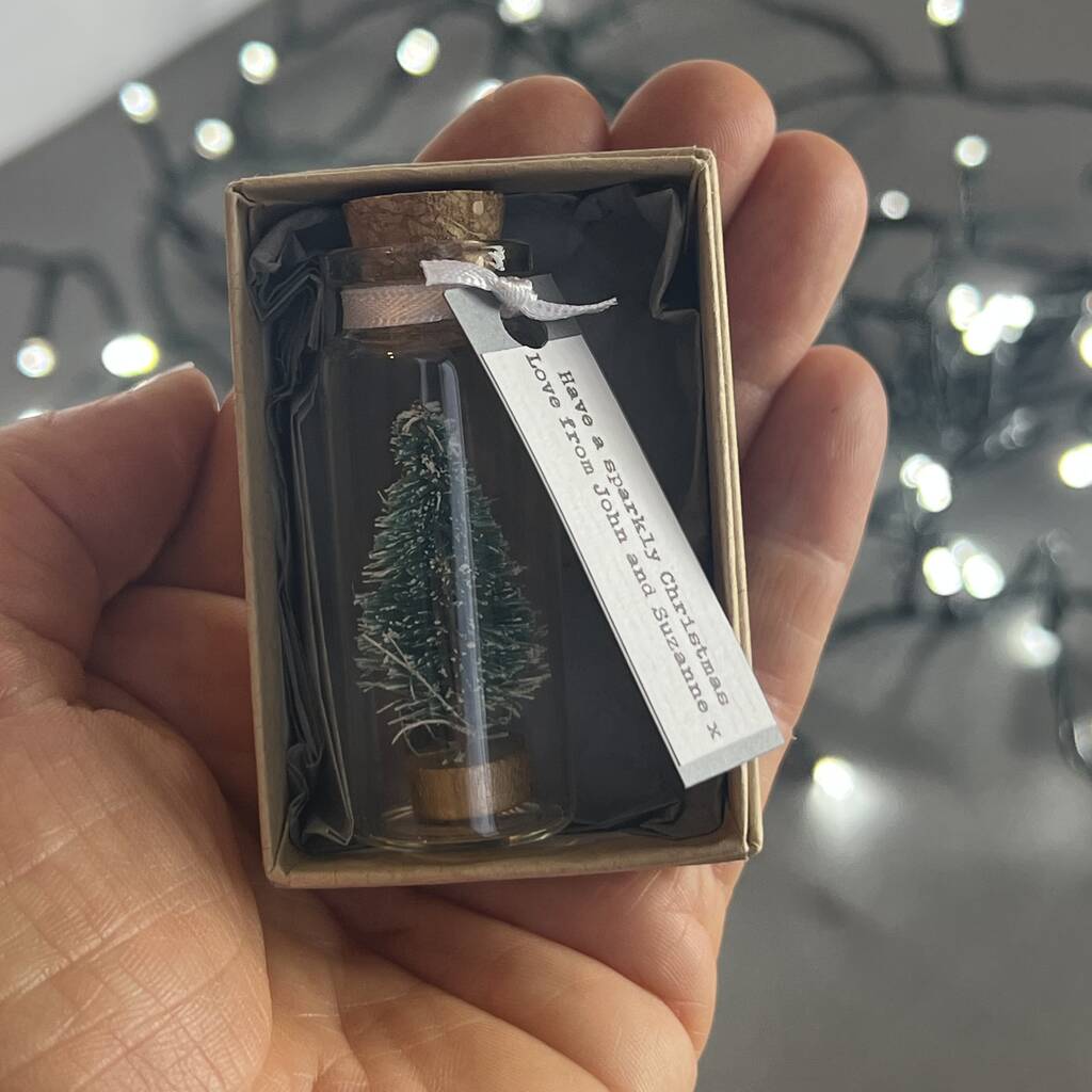 Personalised Miniature Christmas Tree In A Glass Bottle Keepsake
