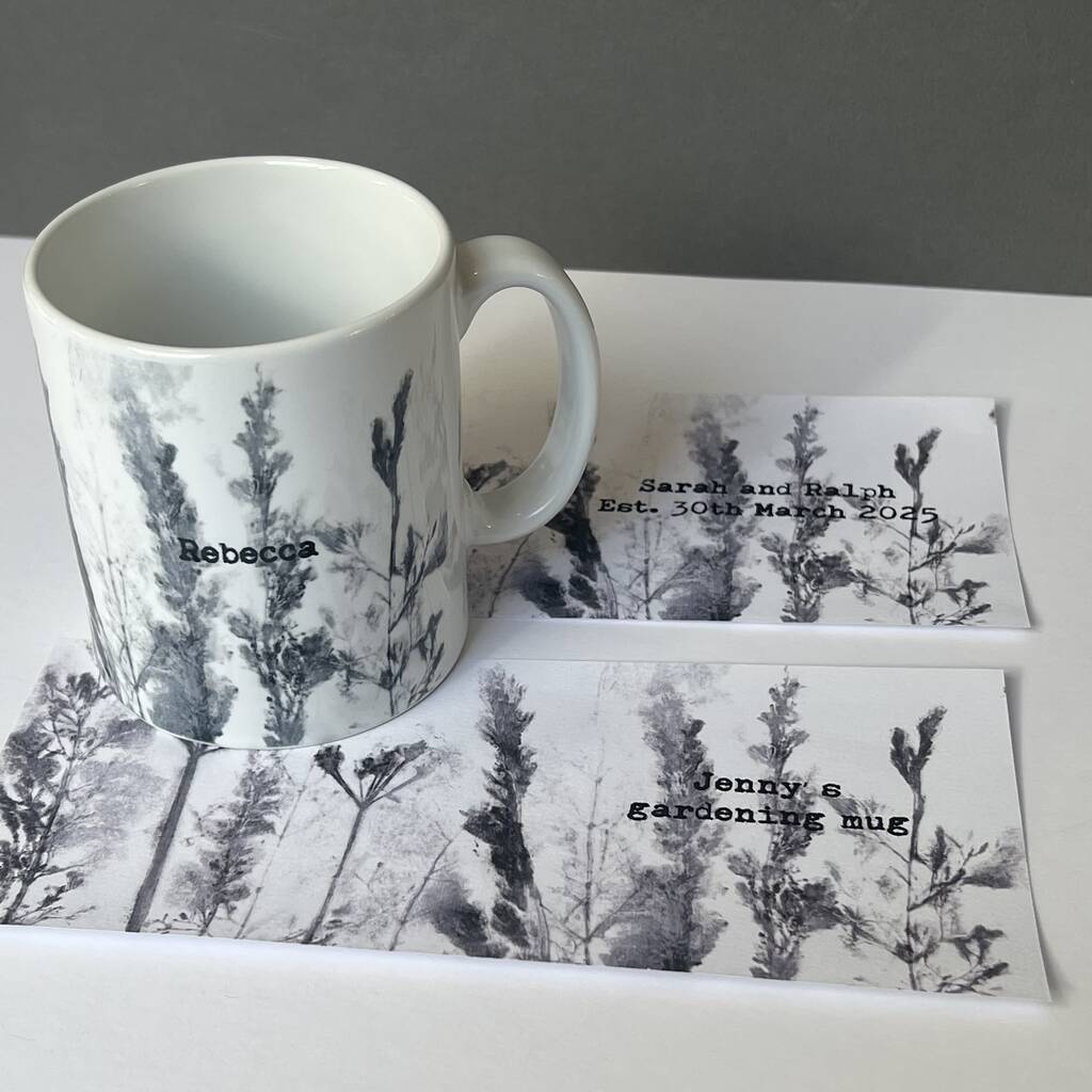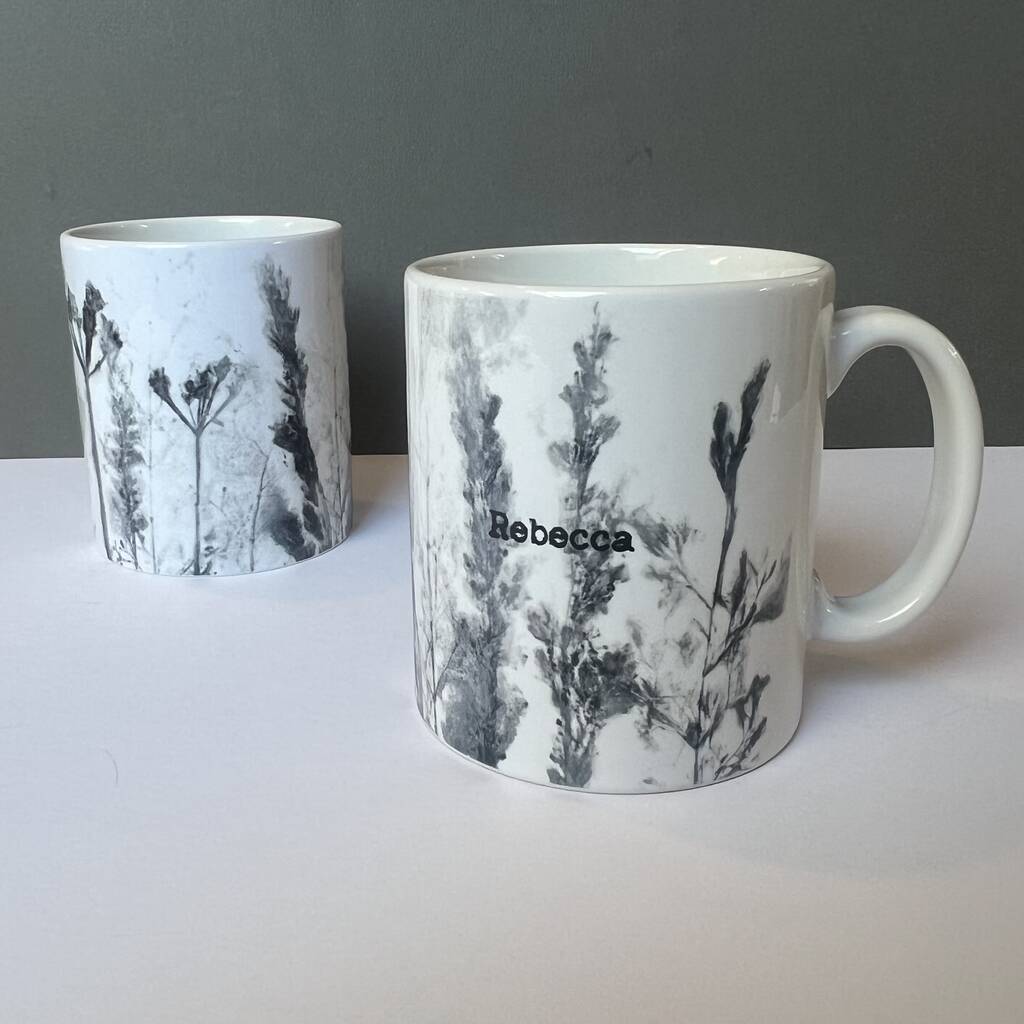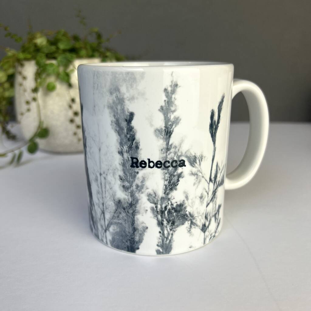 Personalised Mug With Handmade Grasslands Print