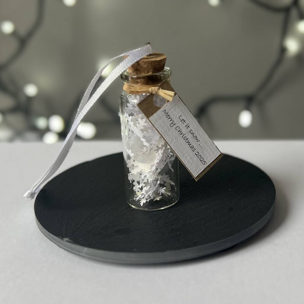 Tiny Bottle Of Snow Personalised Hanging Decoration