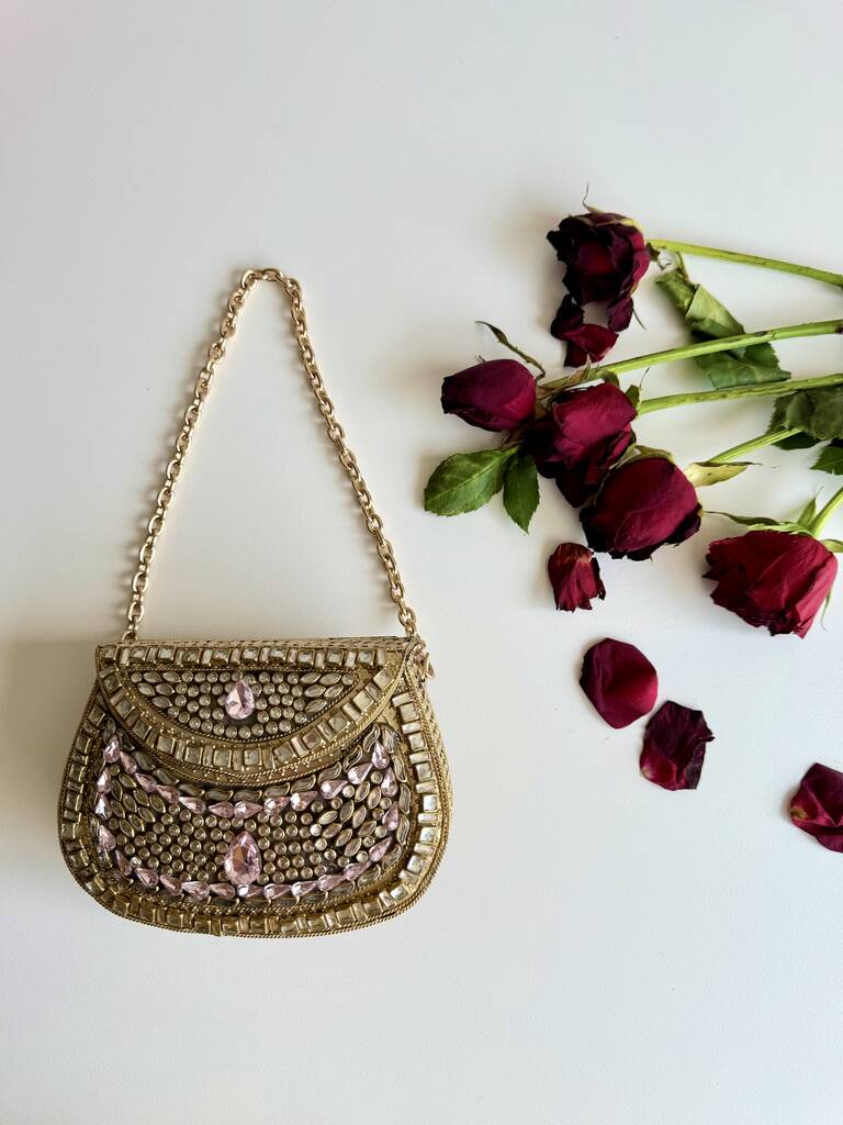Shiraz Mini Kundan Pink And Gold Clutch