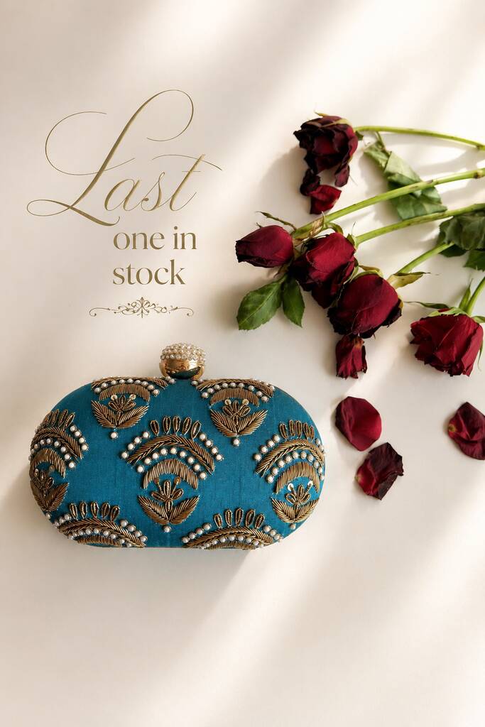 Valeria Teal Embroidered Clutch Bag Last Piece