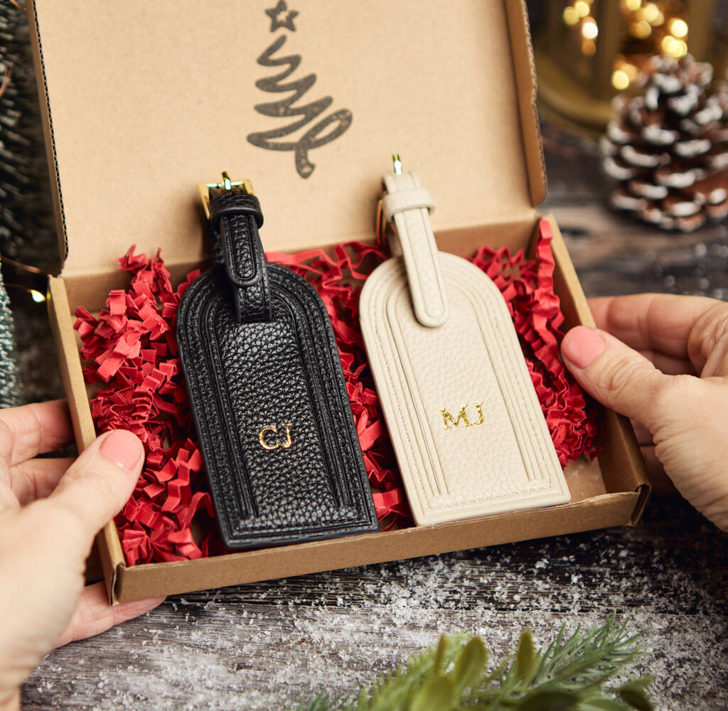 Personalised Luggage Tag Black Or Nude Leather